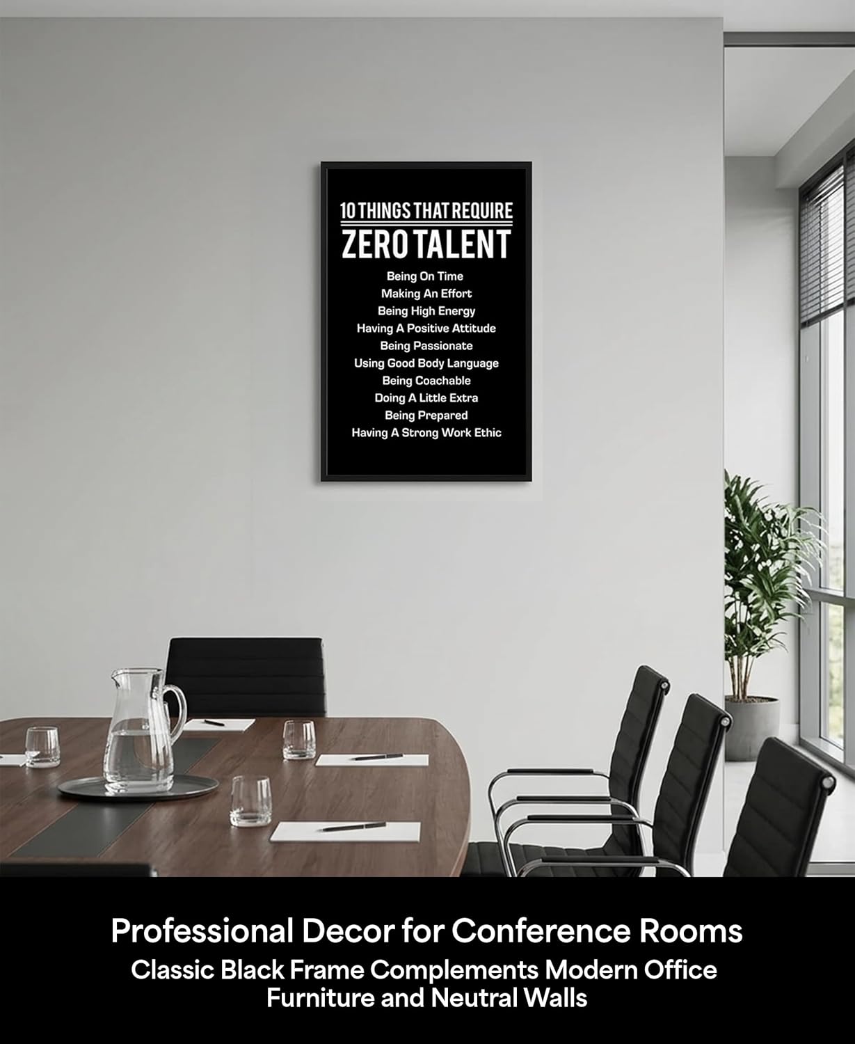 | Recommended Uses For Product | Classroom Inspiration – Great for classrooms, counselor offices, and study spaces to encourage students to focus on effort, attitude, and preparation., Gym & Fitness Spaces – Perfect for home gyms, training facilities, and locker rooms where motivation, consistency, and discipline are emphasized., Home Office Productivity – A daily visual reminder in a home office workspace to stay focused on habits that drive success., Office Motivation Decor – Ideal for corporate offices, meeting rooms, and breakrooms to reinforce discipline, accountability, and a positive work mindset., Team Building Environments – Suitable for coaching offices, team locker rooms, and leadership training spaces that promote strong work ethic and mindset. |