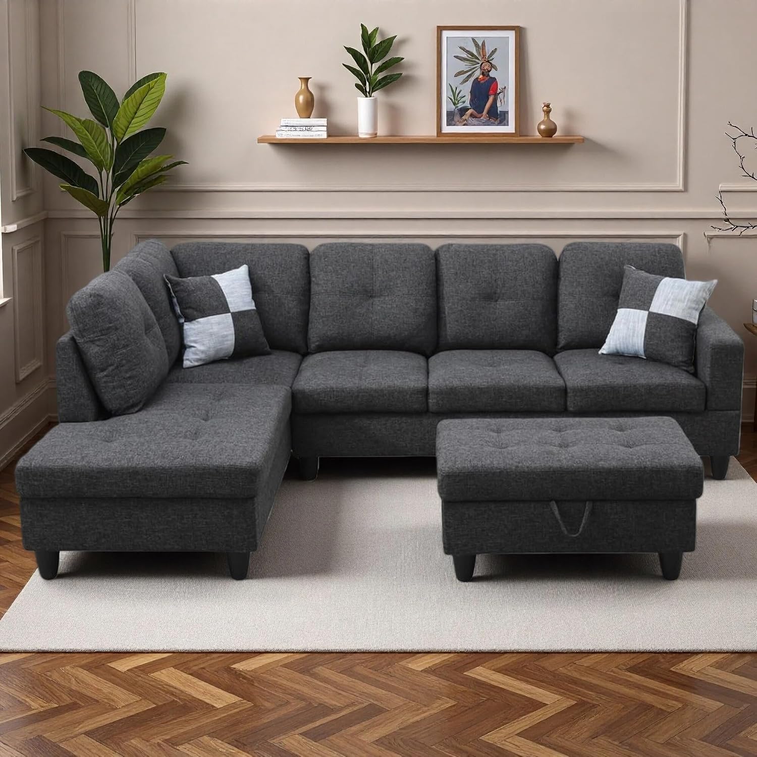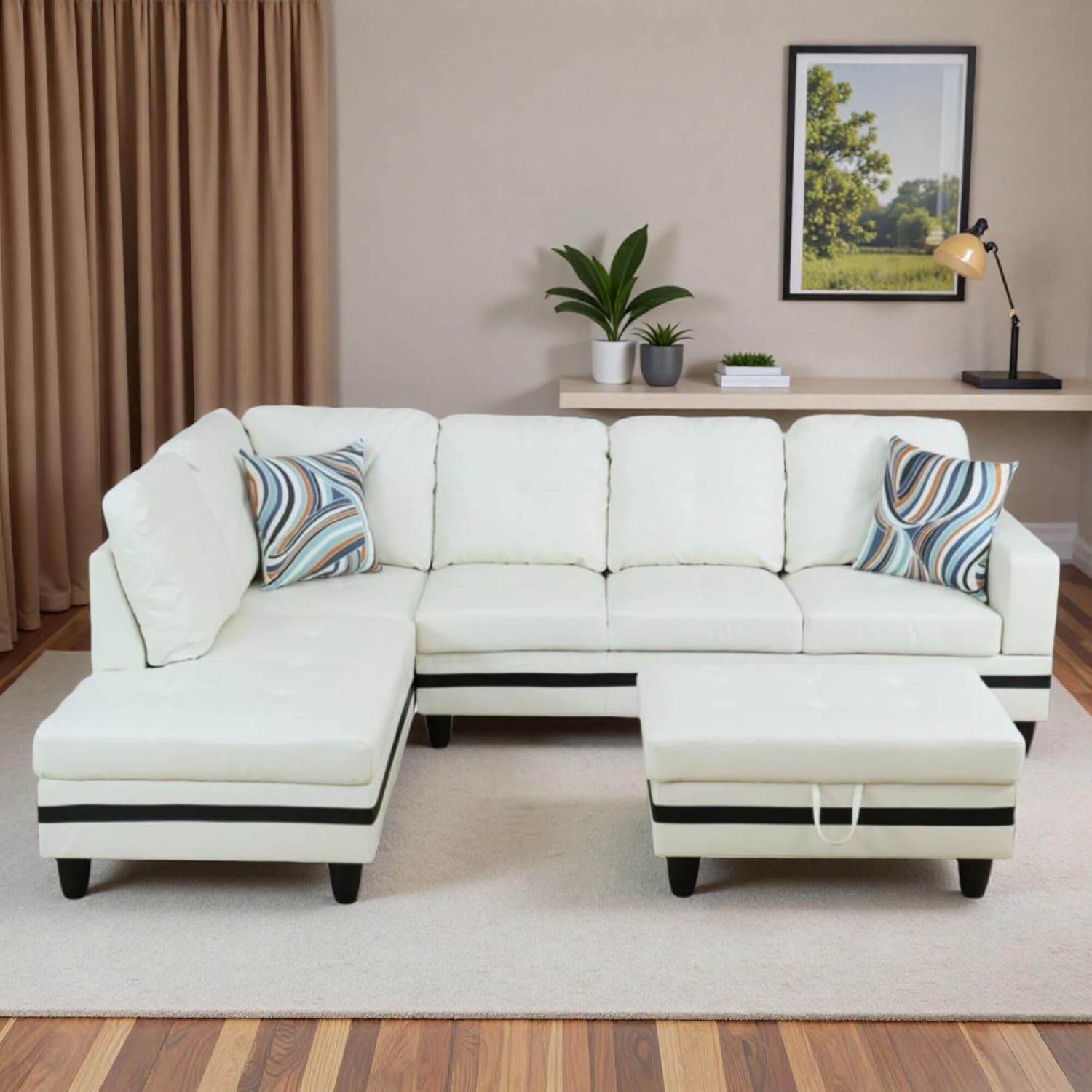 Trygoal 103.5" Modular Leather Sectional Sofa, 4-Seat L-Shaped Couch with Chaise & Storage Ottoman, 3-Piece Convertible Living Room Furniture Set for Apartment Office, Black