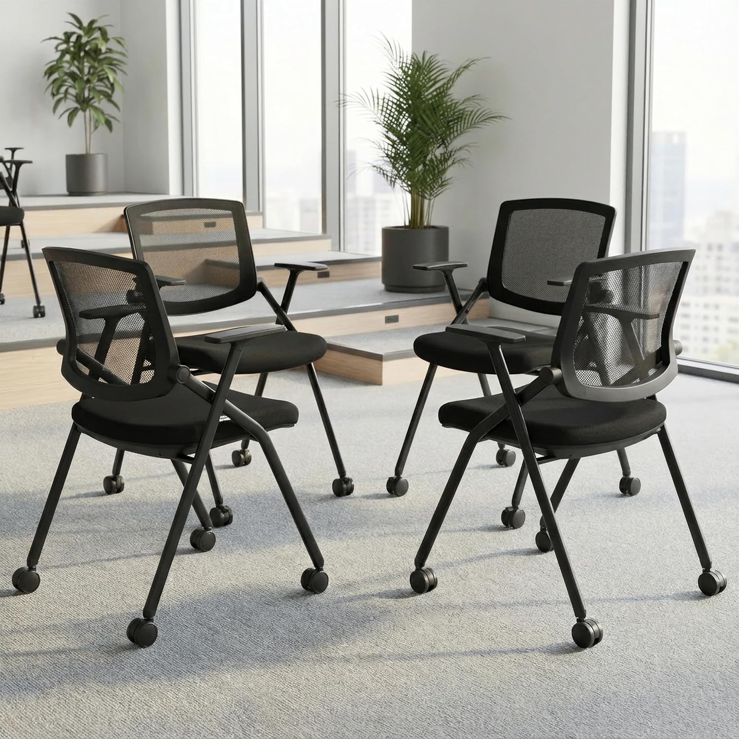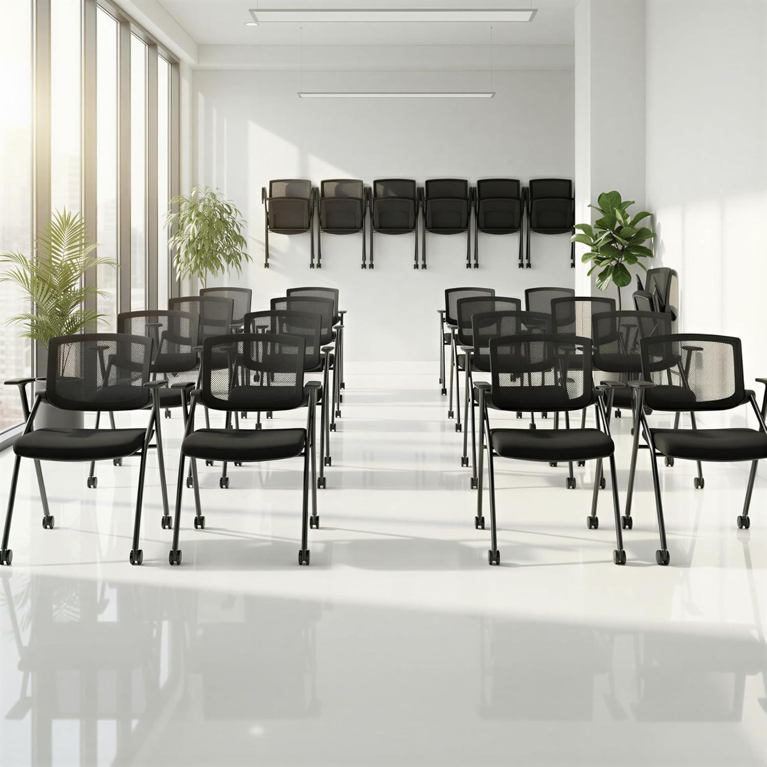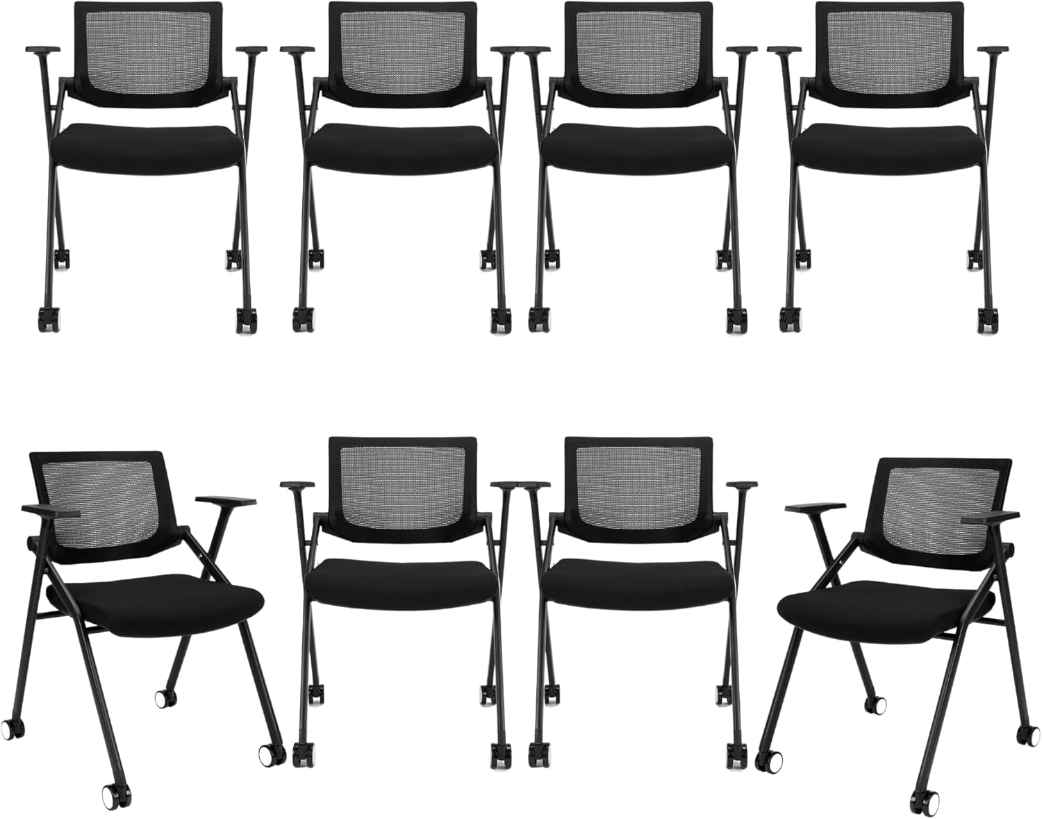 | Subject Character | Foldable & Stackable Conference Room Chairs with PU Wheels, Sliding Armrest, Ergonomic Mesh Bouncing Back for Meeting, Reception, Training Room & Office Folding Chairs, 350 lbs. |