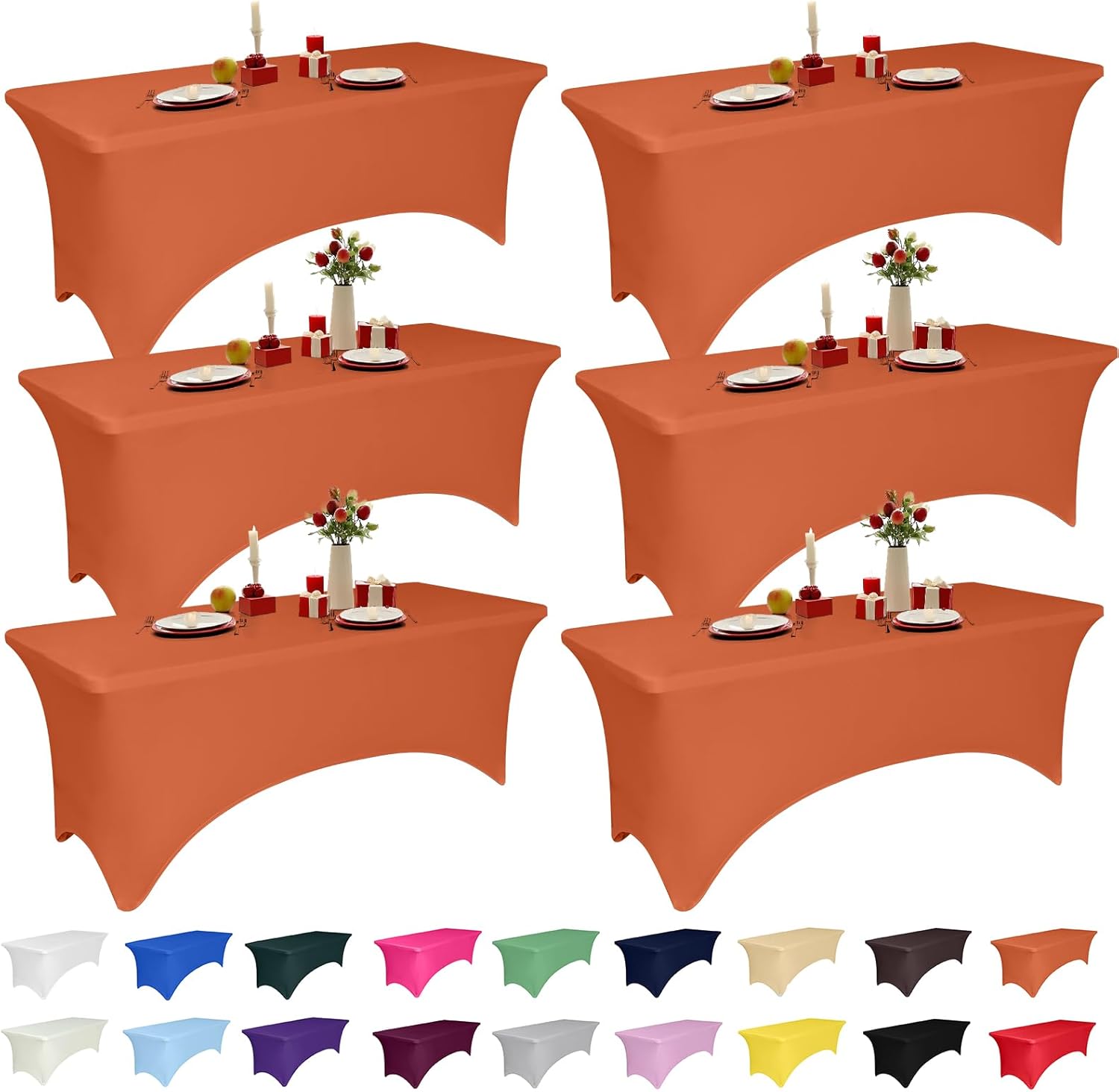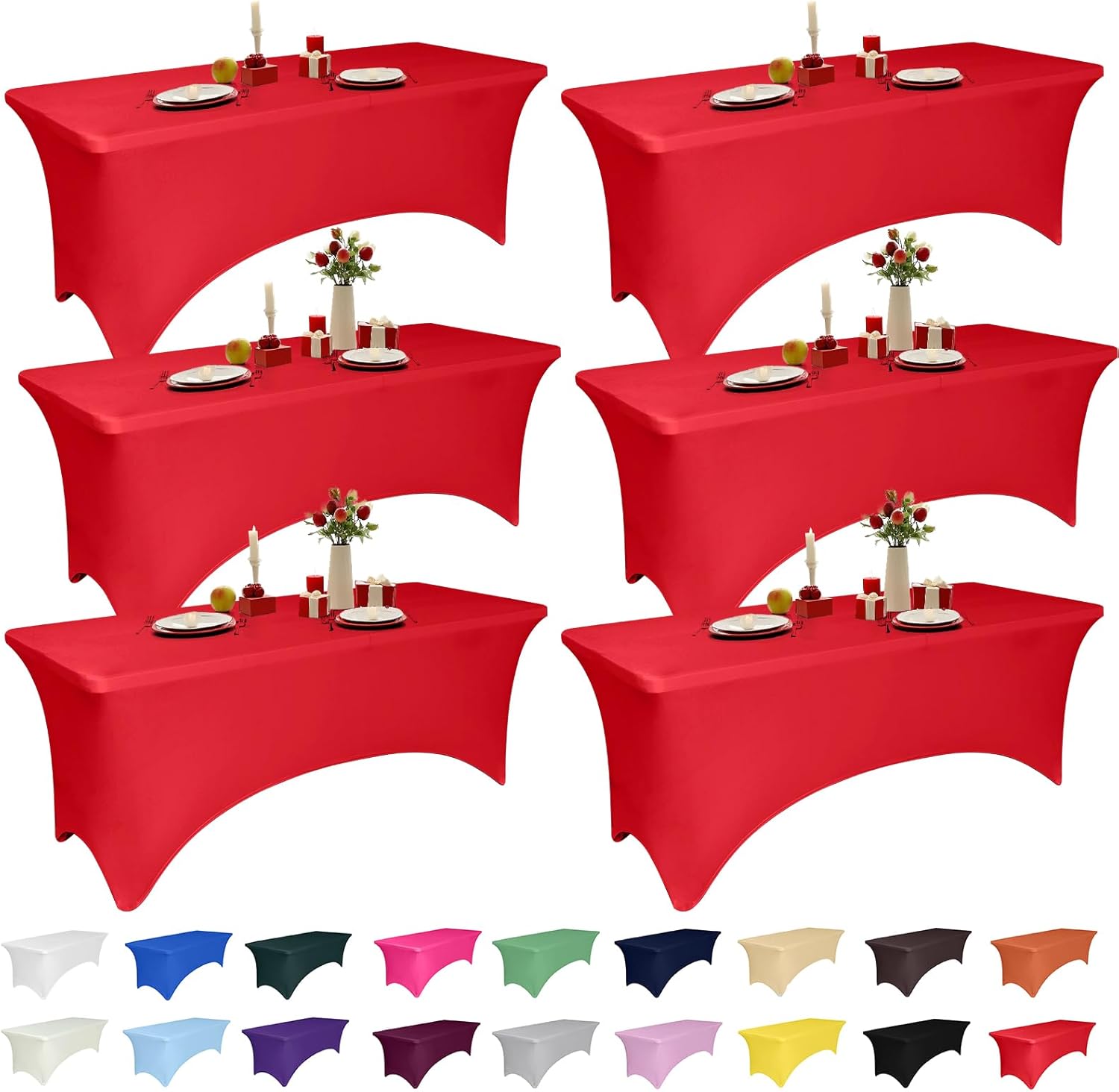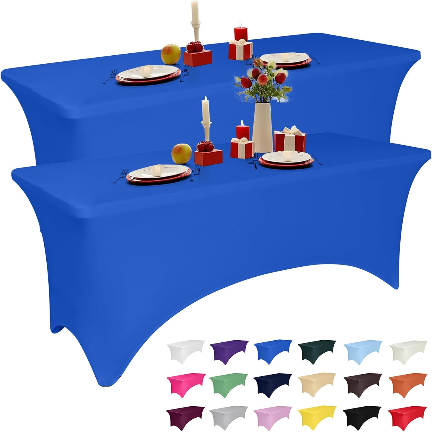 Transform your tables into elegant and professional displays with our high-quality stretch tablecloths, designed to combine durability, style, and convenience. Made from a premium blend of 90% polyester and 10% spandex, these tablecloths offer exceptional stretchability and wrinkle resistance, ensuring a smooth, polished look for every occasion. Whether it’s a wedding, trade show, banquet, or casual gathering, our tablecloths are crafted to impress. Available in versatile sizes of 4FT, 5FT, 6FT, and 8FT, these tablecloths cater to a wide range of table dimensions. The 4FT size fits tables around 48L x 30W x 30H inches, the 5FT size suits tables approximately 60L x 30W x 30H inches, while the 6FT size is perfect for tables measuring 72L x 30W x 30H inches. For larger events, the 8FT size accommodates tables up to 96L x 30W x 30H inches, providing an excellent fit for any setup. The professional design features reinforced leg pockets, ensuring the tablecloth stays securely in place without slipping or shifting. This creates a tidy and sophisticated look that’s ideal for formal events and trade shows. Its lightweight, durable fabric is easy to transport, making it a practical choice for busy event planners and hosts. Caring for these tablecloths is simple and stress-free. Machine washable in cold water on a gentle cycle, they are built to withstand repeated use while maintaining their vibrant appearance and elasticity. Tumble dry on low heat for best results, and you’re ready to go for your next event. Whether you’re looking to elevate the presentation of a wedding table, add a polished touch to a trade show booth, or create a welcoming atmosphere at a party, our stretch tablecloths are your go-to solution. With multiple sizes and exceptional quality, these tablecloths bring value and versatility to any occasion. Choose the size that fits your needs and experience effortless elegance today!