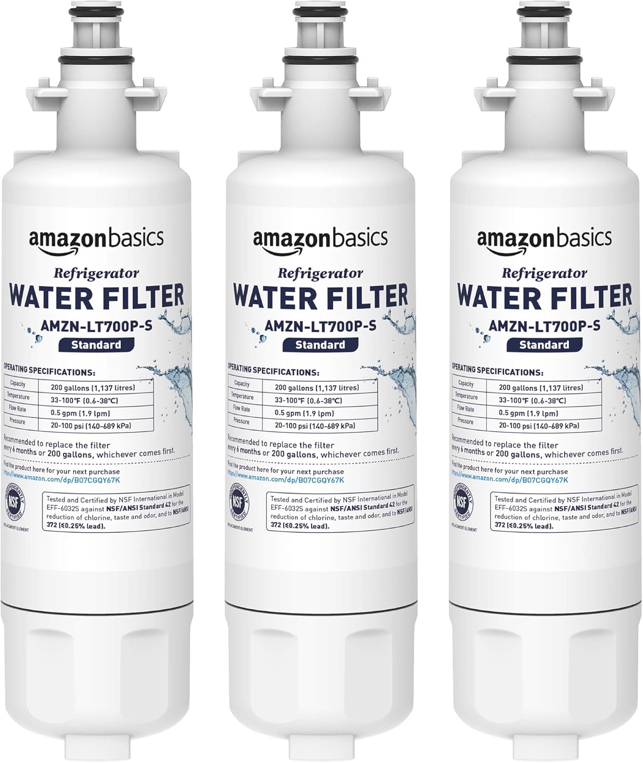 Product Description Amazon Basics Replacement LG LT700P Refrigerator Water Filter Cartridge - Pack of 3, Premium Filtration From the Manufacturer Amazon Basics