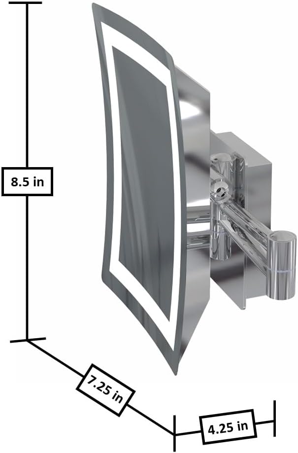This LED rectangular makeup mirror has a 3-position switch - 3,500k/Off/5,500k. When illuminated at 3,500k, the lighting is very close to "regular" light bulbs. At 5,500k, the lighting is equivalent to the light of a cloudless day at noon. The Makeup Mirror has an 6.6" x 4.25" viewing area in an 8.6" x 6.3" frame, and extends up to 12.3" from the wall. The single-sided makeup mirror has 3x magnification power and looks slender and elegant in your bathroom. The LED lighting lasts "forever" and runs cool. Finished in Polished Chrome.