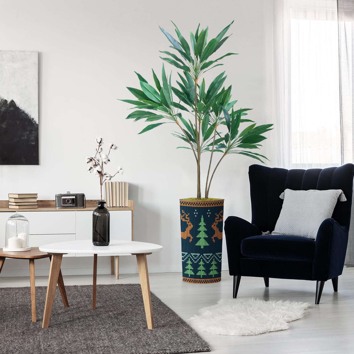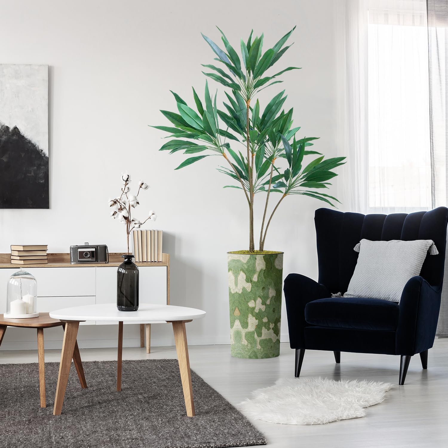 Perfect for all SeasonsAt times, it can be hard to venture outside and enjoy nature. With Signwin's Dracaena Tree, you can create your own personal organic environment! With gorgeous green leaves and a stylish plastic planter, this plant is perfect for home and office. Our artificial plants have a natural botanical allure that can alter the atmosphere of any space. Enjoy nature year-round with Signwin's Dracaena Tree!Easy MaintenanceReal plants can be a hassle. Constant upkeep to ensure a plant remains healthy can be a waste of energy and resources. With Signwin's Dracaena Tree, no watering is necessary. With stems and branches made from polyester and leaves made from silk, our Dracaena Tree is easy to clean! Simply wipe with a soft cloth whenever necessary. Simple AssemblyOur plants come in two pieces. One piece includes the artificial plant, which is attached to the moss base. The second piece is the plastic planter. Simply insert the plant and moss base into the plastic planter for quick assemblage.Attention to DetailWe believe in crafting durable decor that stands the test of time. Our in-house design team routinely checks the details of or plants and planters to ensure perfect product quality. We strive to bring customers the most unique and durable synthetic plants. Your Dracaena Tree and accompanying planter will always be perfectly crafted, matching our exacting standards.