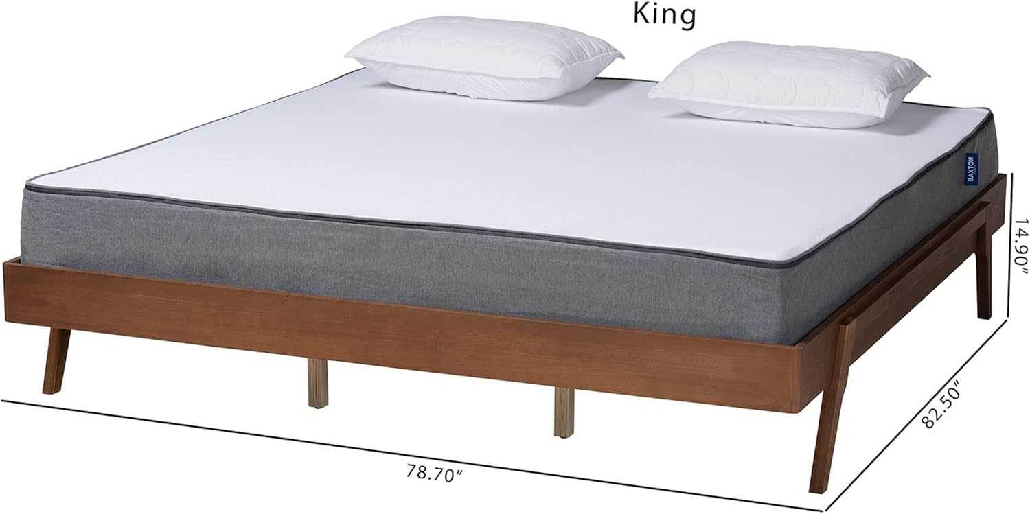 Embrace the soothing austerity of mid-century design with the lovely Sarita bed frame. Made in Malaysia, this classic piece is crafted from sturdy wood. Clean lines and crisp angles are complemented by angled legs for an easy to coordinate outline that enhances the geometry of any layout. The Sarita requires assembly and features wood slats for mattress support, eliminating the need for a box spring. Lending a timeless touch of style, the Sarita bed frame anchors the modern bedroom.