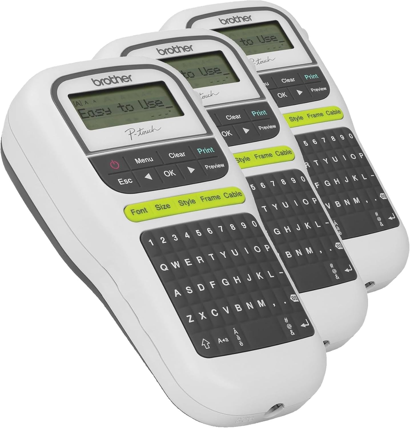 Elevate your organization with the Brother P-Touch PTH110BP label maker machine, the perfect solution for professional-grade labeling needs. This portable label printer combines versatility with precision, making it ideal for small business owners and home organizers seeking efficient solutions. The intuitive QWERTY keyboard and easy-view display ensure precise control over your label design. Create professional-looking labels with up to two lines of text on labels up to 12 mm wide. Select from three distinct fonts, 14 stylish frames, and over 250 symbols to personalize your labels exactly how you want them. This label maker excels in versatility, perfect for organizing your home office, garage, kitchen, or workplace. Label storage bins, file folders, shelves, and cables with confidence. The convenient cable labeling feature helps maintain a tidy workspace by clearly identifying wires and cables. Experience unmatched durability with Brother P-Touch TZe tapes. These professional-grade labels feature a unique laminated design that protects your text, making them resistant to water, fading, peeling, and extreme temperatures. Whether used indoors or outdoors, these labels maintain their clarity. The comprehensive bundle includes one sample black-on-white label tape and three full-length black-on-white TZe laminated label tapes (12 mm width x 8 m length). The label maker supports various TZe tape widths from 3.5 mm to 12 mm. Enhance your labeling experience with smart features: one-touch keys provide quick access to common functions, while the built-in memory stores up to 15 frequently used labels for instant reprinting. Power your label maker with 6 AAA batteries for portable use, or connect an AC adapter (sold separately). For optimal performance, use only genuine Brother P-Touch TZe tapes and follow the included care instructions, such as avoiding exposure to extreme conditions and keeping the print head clean.