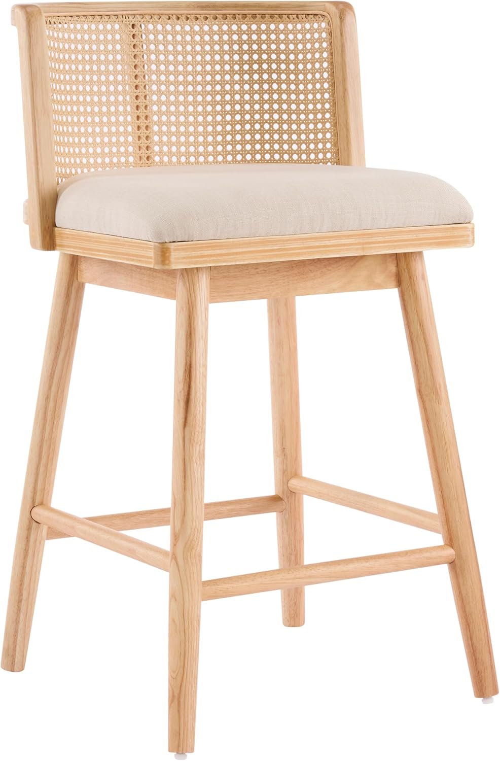 Designed to balance comfort, durability, and natural elegance, this set of counter-height bar stools is crafted from solid rubberwood for long-lasting strength. The upholstered seat and gently curved rattan backrest provide supportive, relaxed seating, while the clean silhouette fits seamlessly into kitchens, dining areas, or café-style spaces. A thoughtfully reinforced structure ensures everyday stability, making these stools a practical yet refined addition to modern living.
