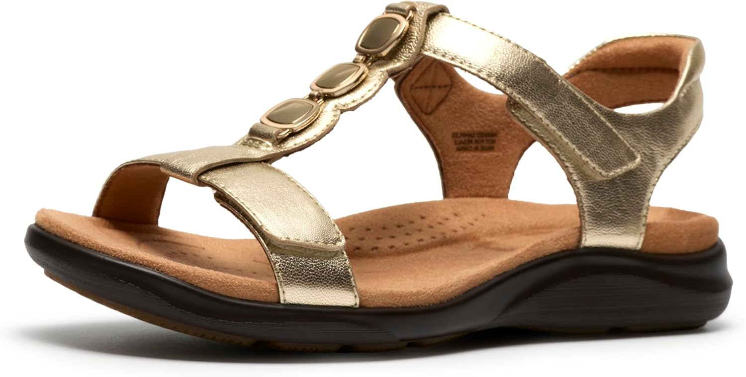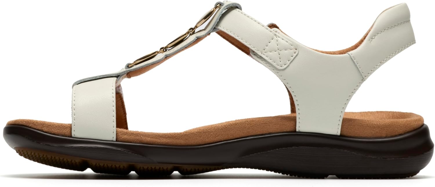 Move confidently in Clarks summer sandal, Kitly Gem. Functional yet elegant, it supports busy feet with Clarks targeted Contour Cushion footbed, while adjustable straps make every walk to the beach or high street a sleek, secure one. - Premium white leather upper - Moulded Contour Cushion footbed supports every step - Adjustable riptape straps deliver a secure, custom fit - Soft padding at the ankle offers additional comfort - Textile sock and lining - Heel height: 25mm