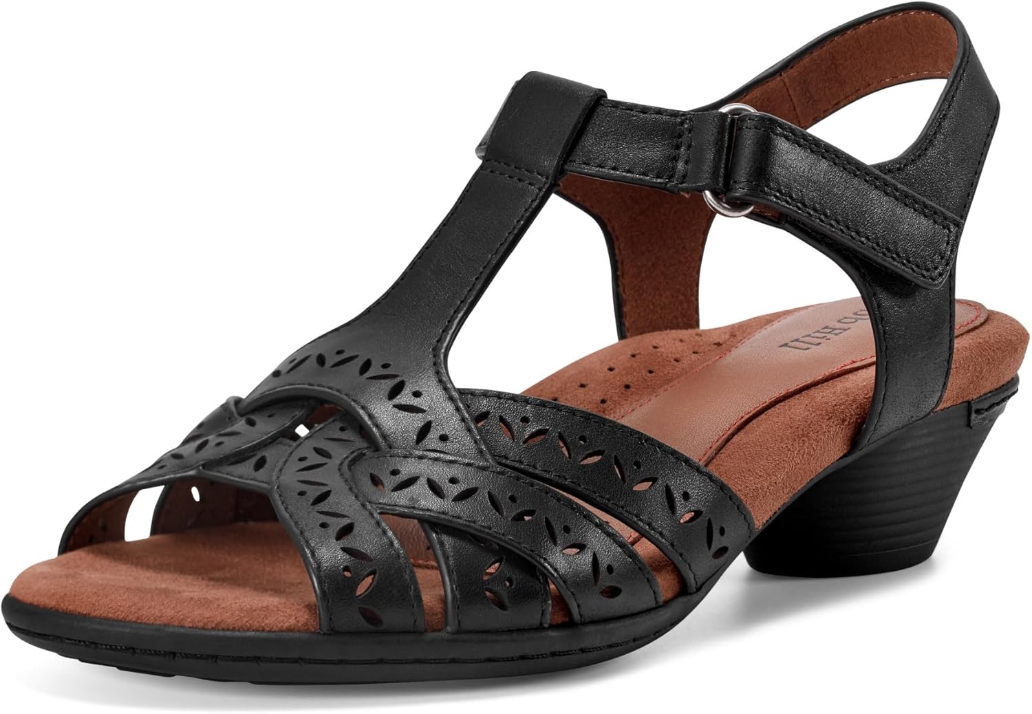 Let your free spirit soar in the Cobb Hill® Lorna T-strap heeled sandal. Featuring exceptional arch support, cushioned footbed and a flexible outsole. These sandals feature pretty woven detailed straps, and an adjustable ankle strap for a customized fit. The airy sandal feel and comfy mid-height heel gives you the perfect blend of comfort and charm.