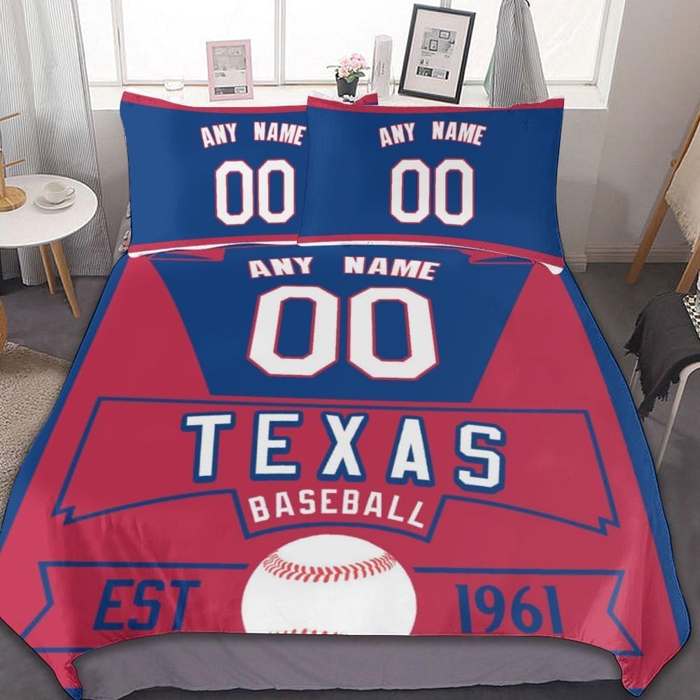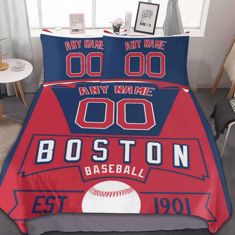 Custom Comforter Set, 3 Piece (1 Comforter + 2 Pillowcases) - Soft, Lightweight Baseball Fan Bedding Set with Personalized Name & Number