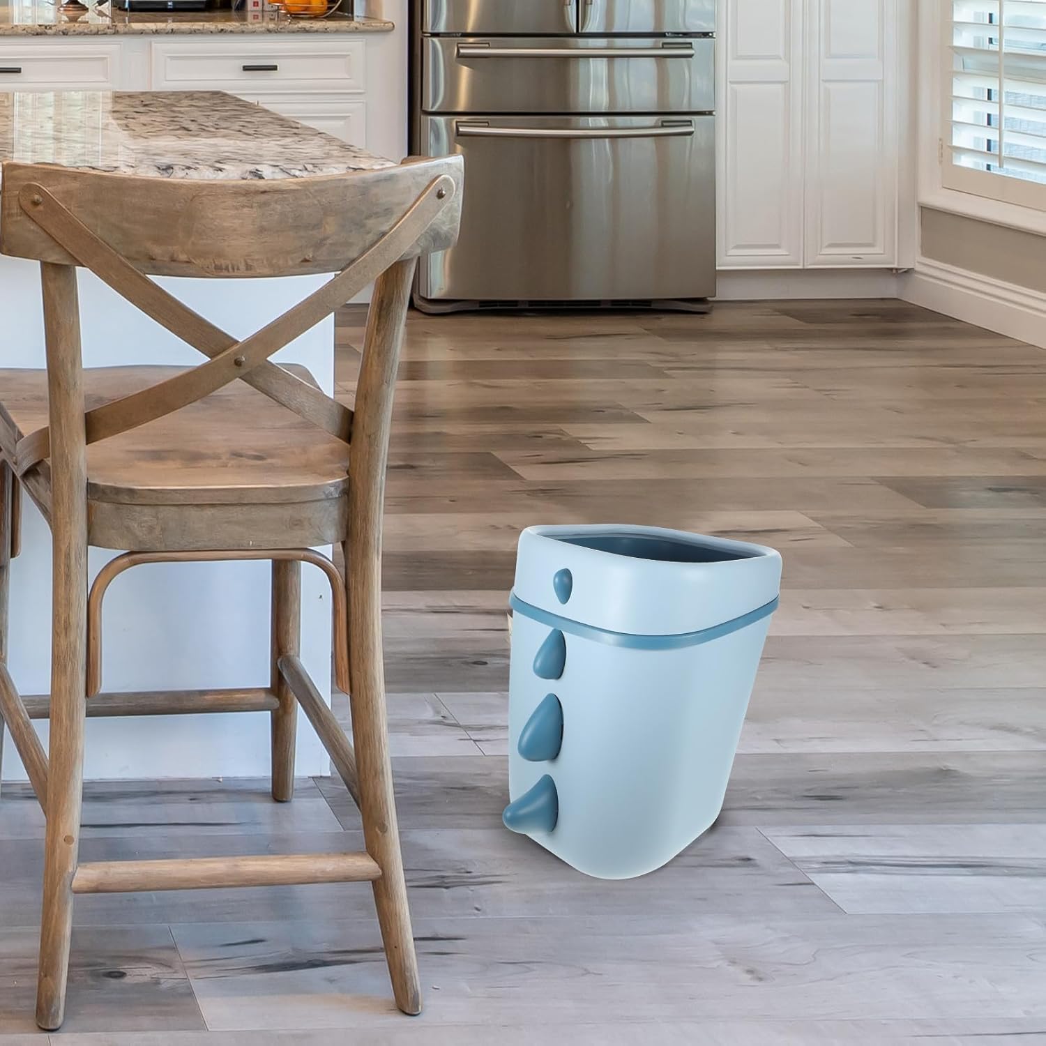 Cute Dinosaur Trash Can Multi-Function Garbage Bin Large Capacity Blue Plastic Trash Holder for Bedroom and Living Room Use