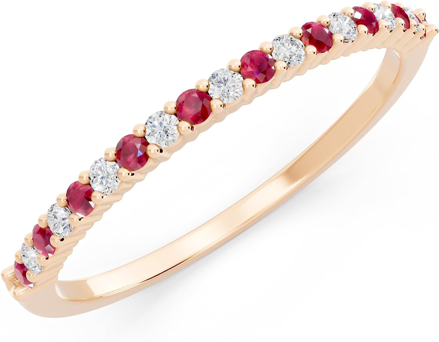 This lovely Wedding Band features Round Natural Ruby & White Diamond(s) in Prong Setting.All stones are Sparkling.Our product includes a complimentary jewelry box for safe storage and presentation.SKU # DR9766-1486-P