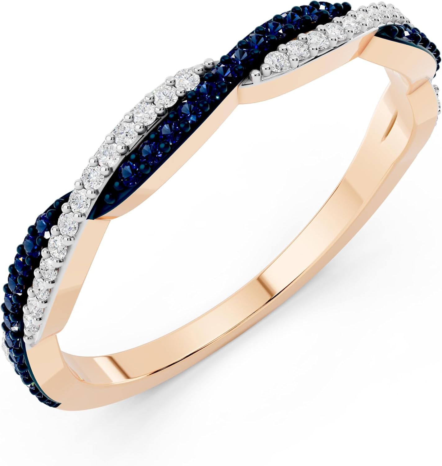 This lovely Swirl Ring features Round Natural Blue Sapphire(s) & White Diamond(s) in Prong Setting.All Stones are Sparkling.All our products will come with a complimentary jewelry box for safekeeping and presentation.SKU # DR4761-1987-14K-P