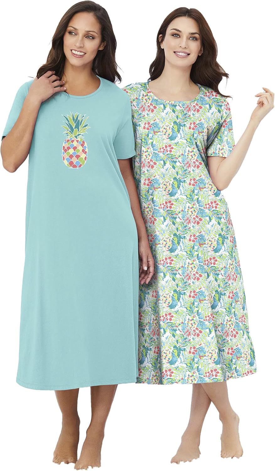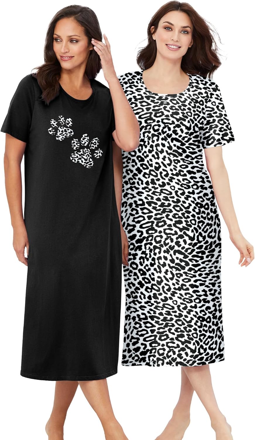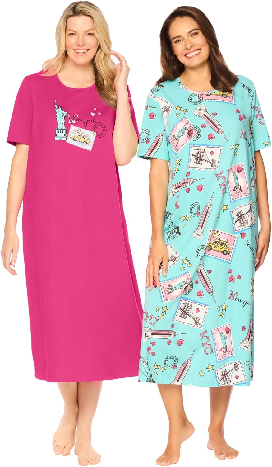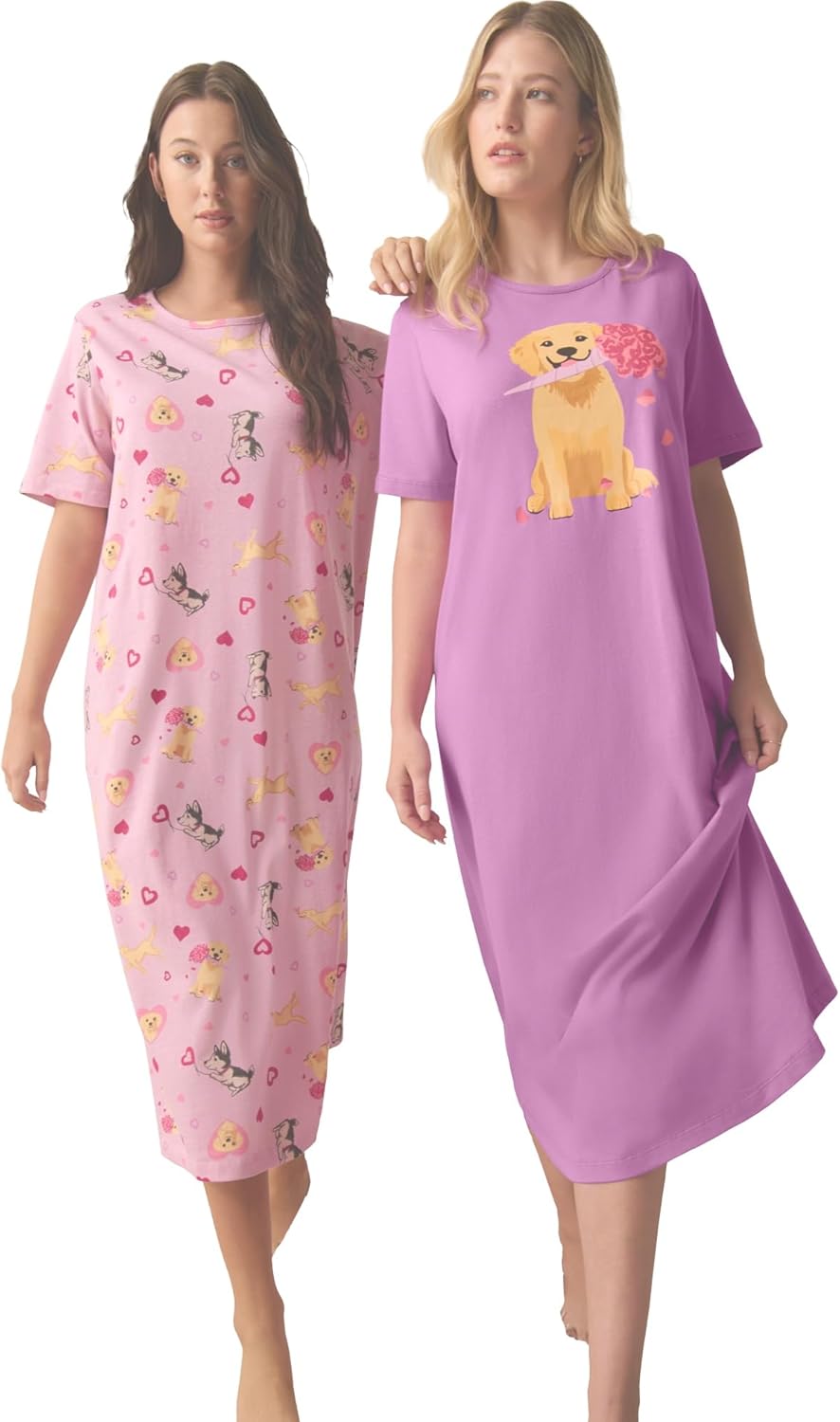 br>Enjoy the ultimate comfort with a relaxed fit designed for a great night's sleep.br>Available in a convenient 2-pack for double the style and value.br>Made from 100% pure cotton for a soft, breathable feel that's perfect for sleeping.br>Features cute prints and graphic statements that add a fun touch to your bedtime routine.br>Perfect for both sleeping and lounging on cozy days.br>46" length provides full coverage and maximum comfort.br>Heather Grey option includes cotton/poly for added softness.br>Easy care with machine wash convenience.br>Importedbr>