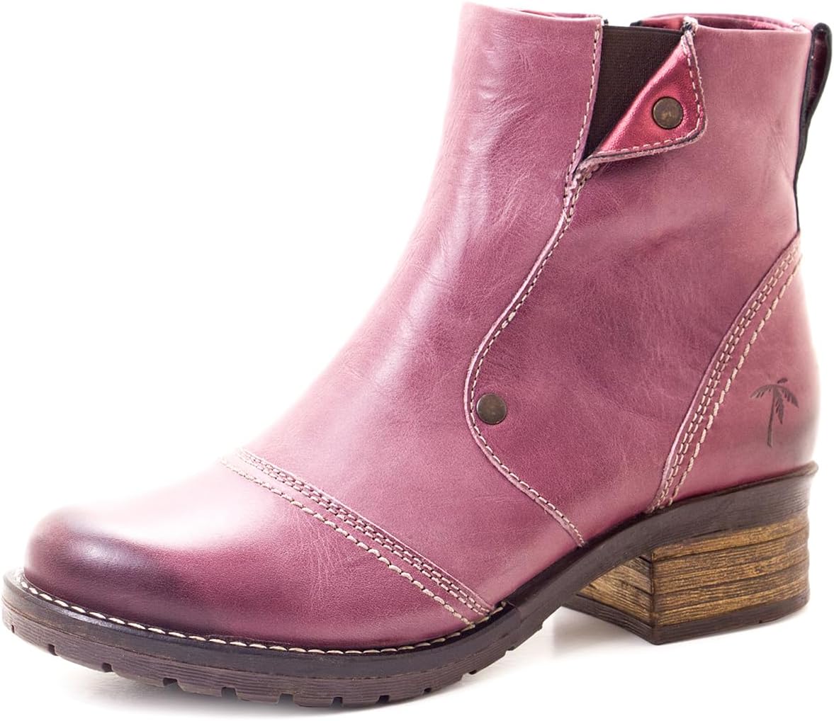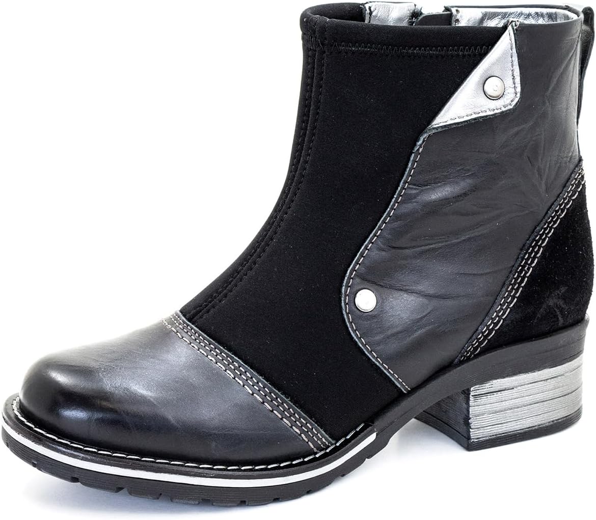 The Dromedaris Kassia ankle boot with inside zipper for easy entry has a soft waxy leather that has been twisted to give it a creased effect, brushed to perfection. Metallic trims and beautiful stitching detail make this boot really special. Fur lining for warmth, breathability and added comfort. Removable “4D Technology” footbed for lateral stability and arch support with metatarsal cookie for shock absorption and soft cushioning. Exclusive Dromedaris TR rubber outsole with new leather welt with heavy stitch, stacked heel look, some with slightly metalized brushed finishes.