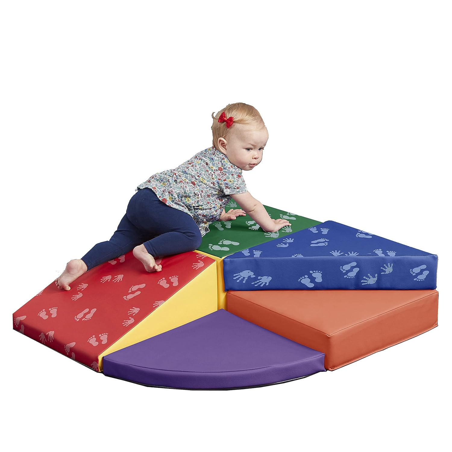 Give your little ones an exciting twist on play with the SoftZone Junior Tiny Twisting Corner Climber. The beginner climber includes tiered steps, a ramp, a pedestal, and a pad with endless opportunities for climbing, crawling, and social interaction. Scaled down in size, this mini foam playset is great for daycares, apartment homes, and smaller playrooms. With adult supervision, this playset is intended for use in a corner of a room for safe play that promotes and strengthens early muscle movement, enhances physical coordination, and balance, and helps overall body control. The climber keeps curious babies active and engaged while encouraging little hands and feet to explore the gentle foam climbing structure. The small foam shapes can be used independently or as a part of a fun obstacle course. As young children explore, they gain self-confidence while improving hand-eye coordination, agility, and core strength. Soft blocks are lightweight allowing parents and teachers to move and stack for space-saving storage. The foam core of each piece is covered with water-resistant polyurethane vegan leather with a durable woven backing and features a non-slip base for added stability. Fully stitched seams and soft edges make this play set safe for children.
