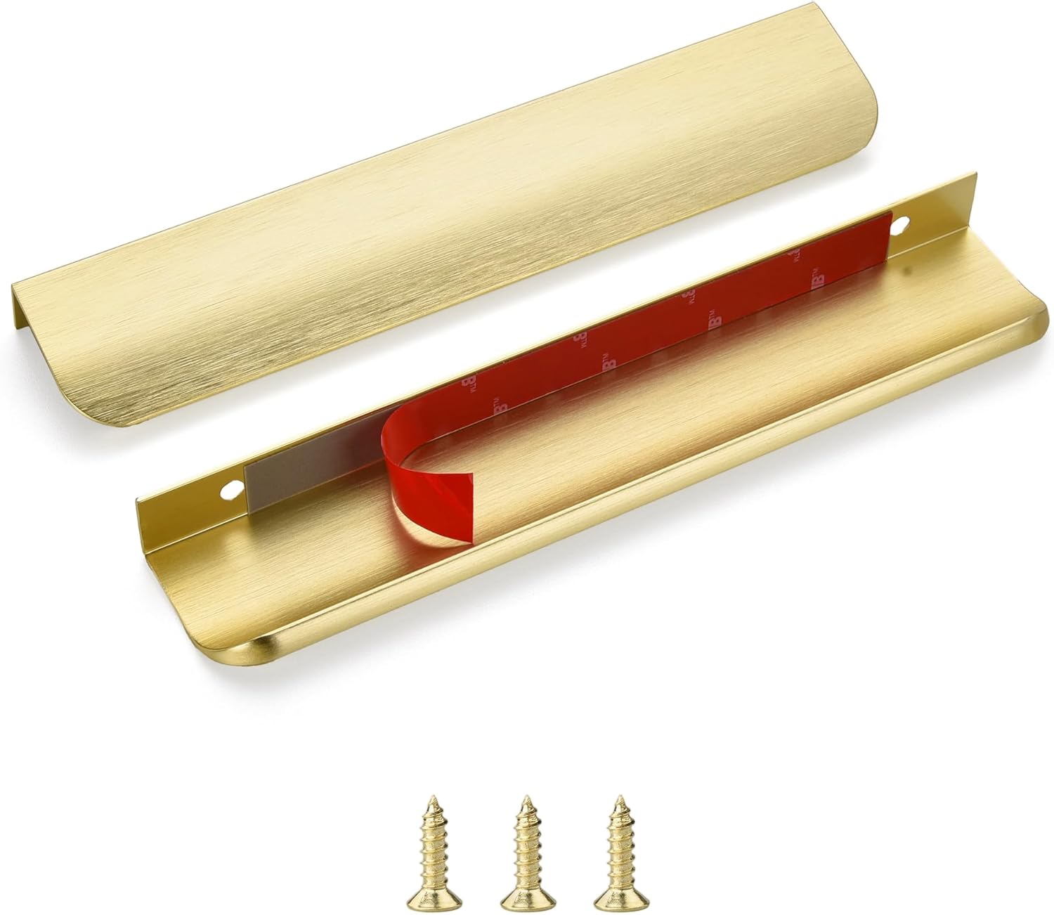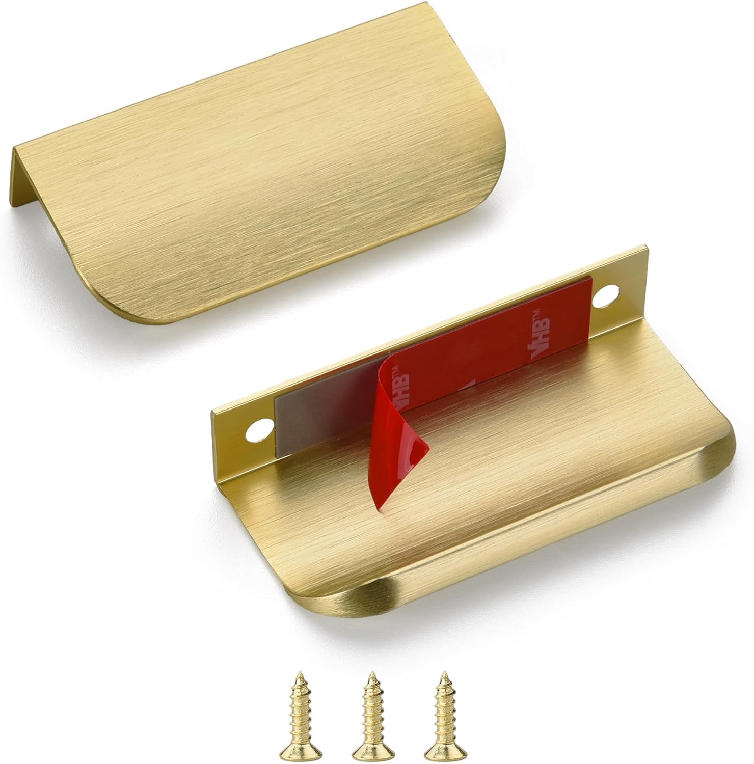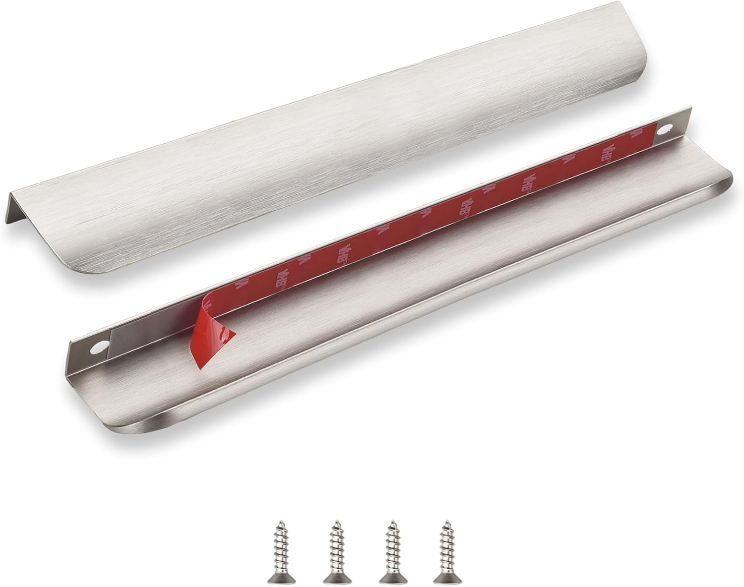 Edge Finger Pulls for Cabinets Peel and Stick on Kitchen Drawer Pull Hidden Invisible Flat Self Adhesive No Drill Handle Pack of 10 Brushed Nickel 3.15 inch Easy Installation