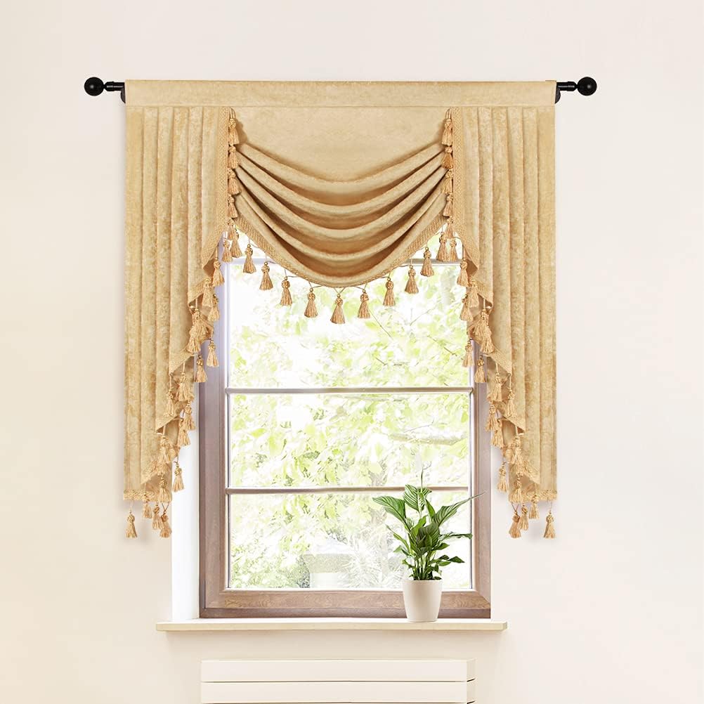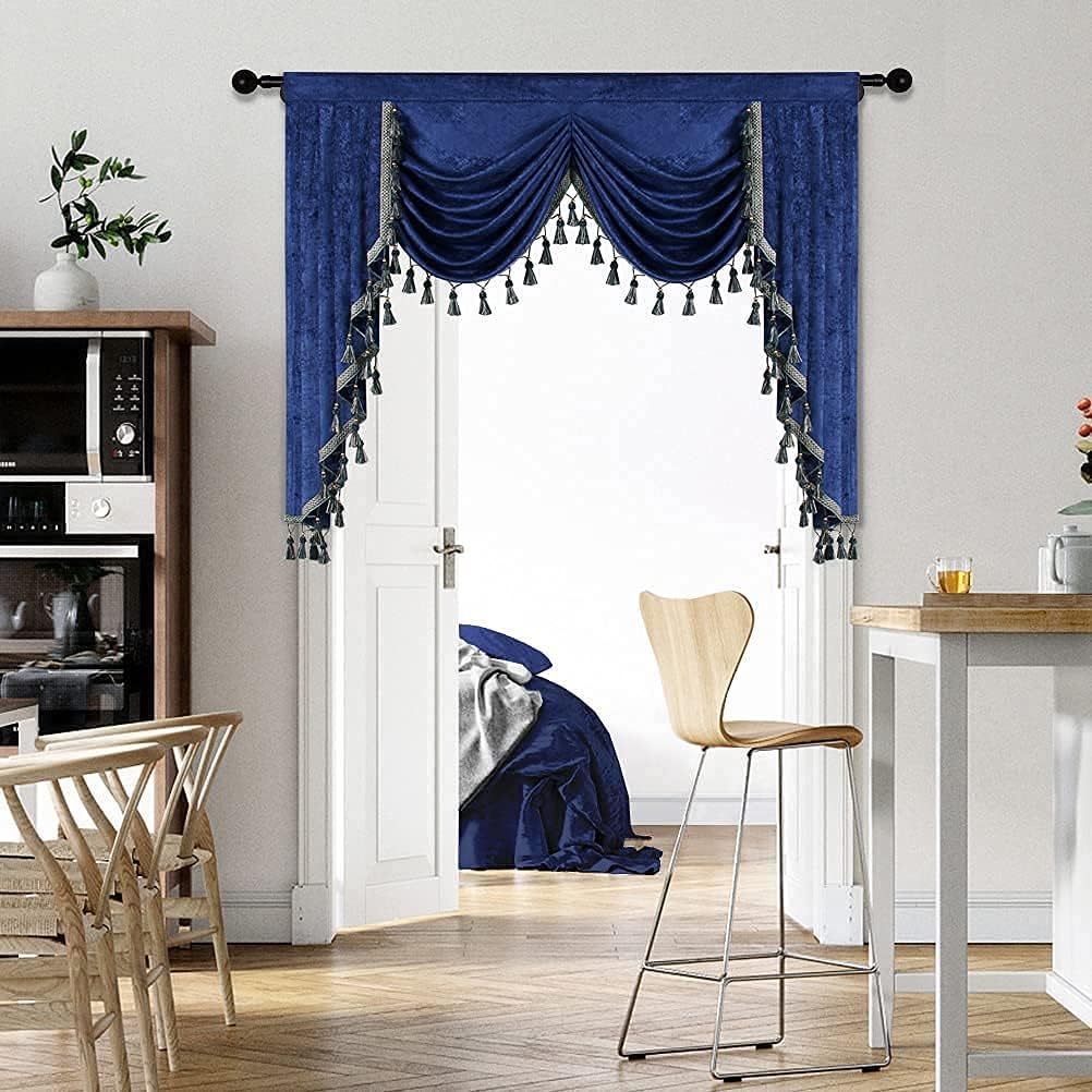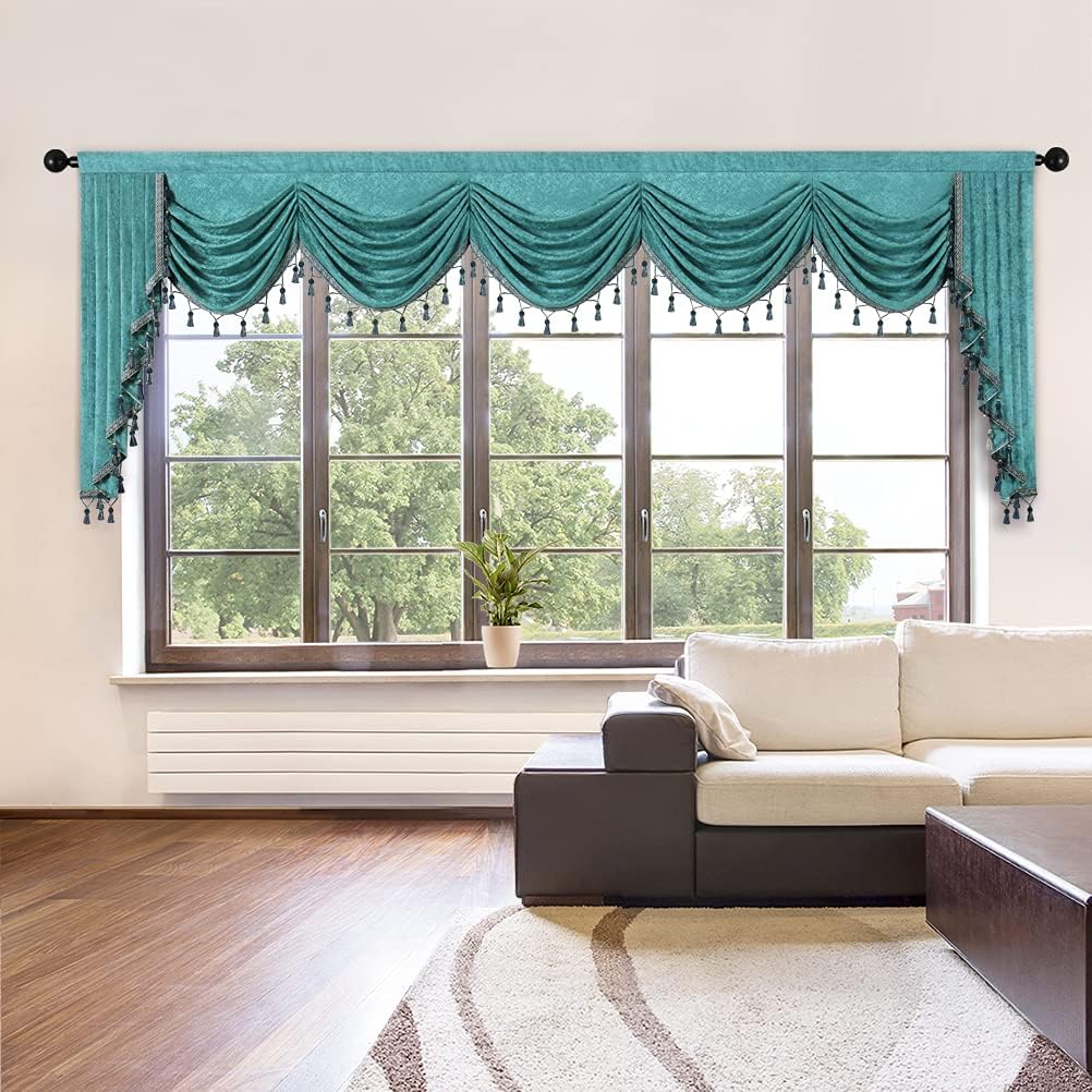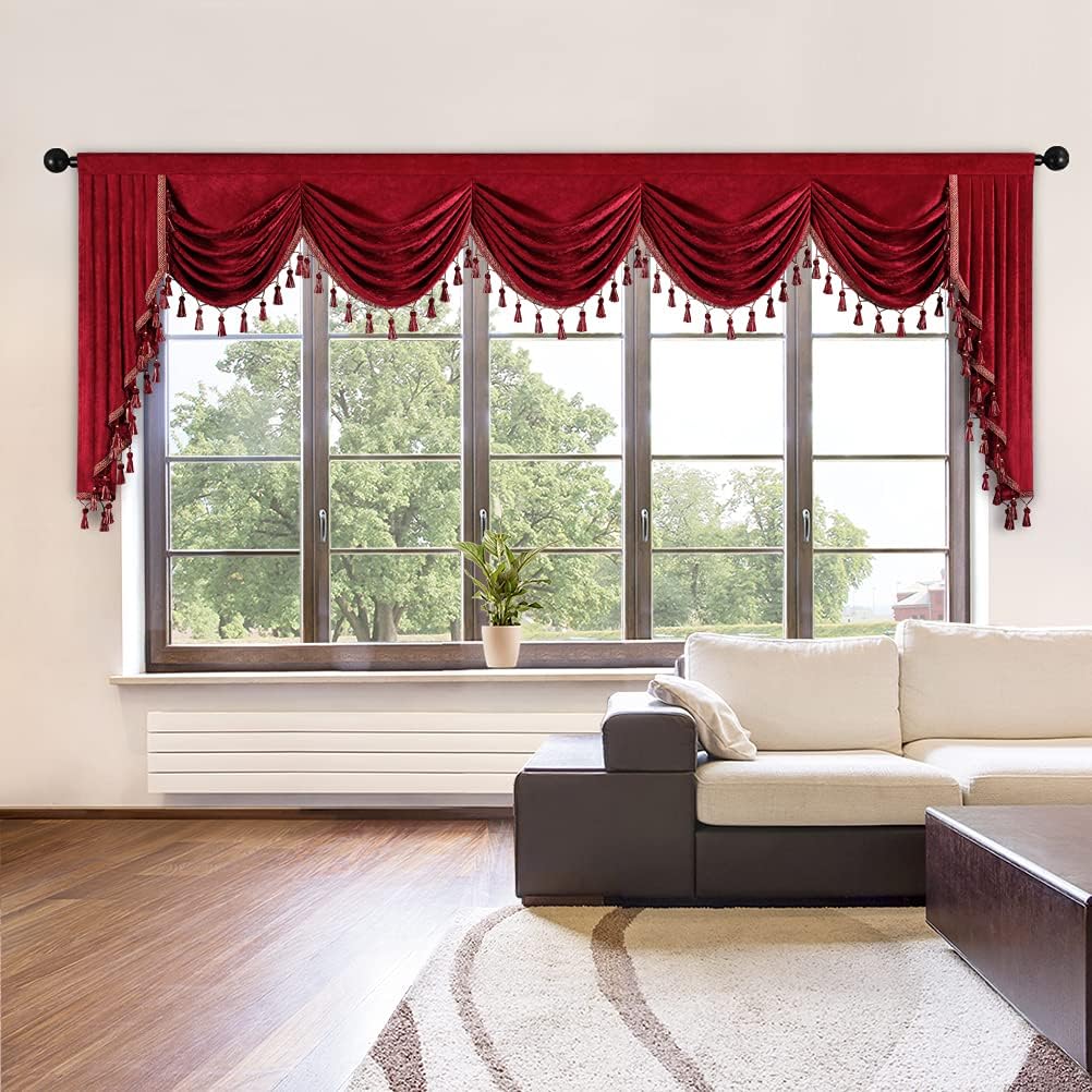 ❤Size: 1 piece valance, 79" wide with 3" pocket, swag near 22"~24" long,cascade 43" long.