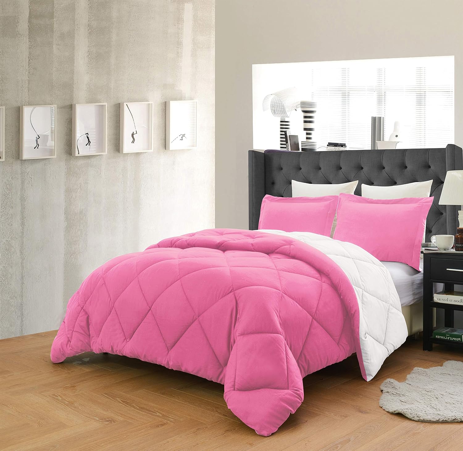 Enjoy a cool and comfortable night's sleep with the exceptionally soft Dayton Reversible Comforter set. These All Season Down Alternative Comforters offer a lasting vibrancy of color, no matter how often they are washed. They are made of high strength microfiber yarns with a polyester filling to provide maximum comfort. The Dayton Comforters will remain soft to the touch and wrinkle free for years to come. This bed cover is reversible and has two equally attractive colors on each sides. Every time you get bored with a look, you can just flip it over. Available in 16 color combinations and all 5 sizes.