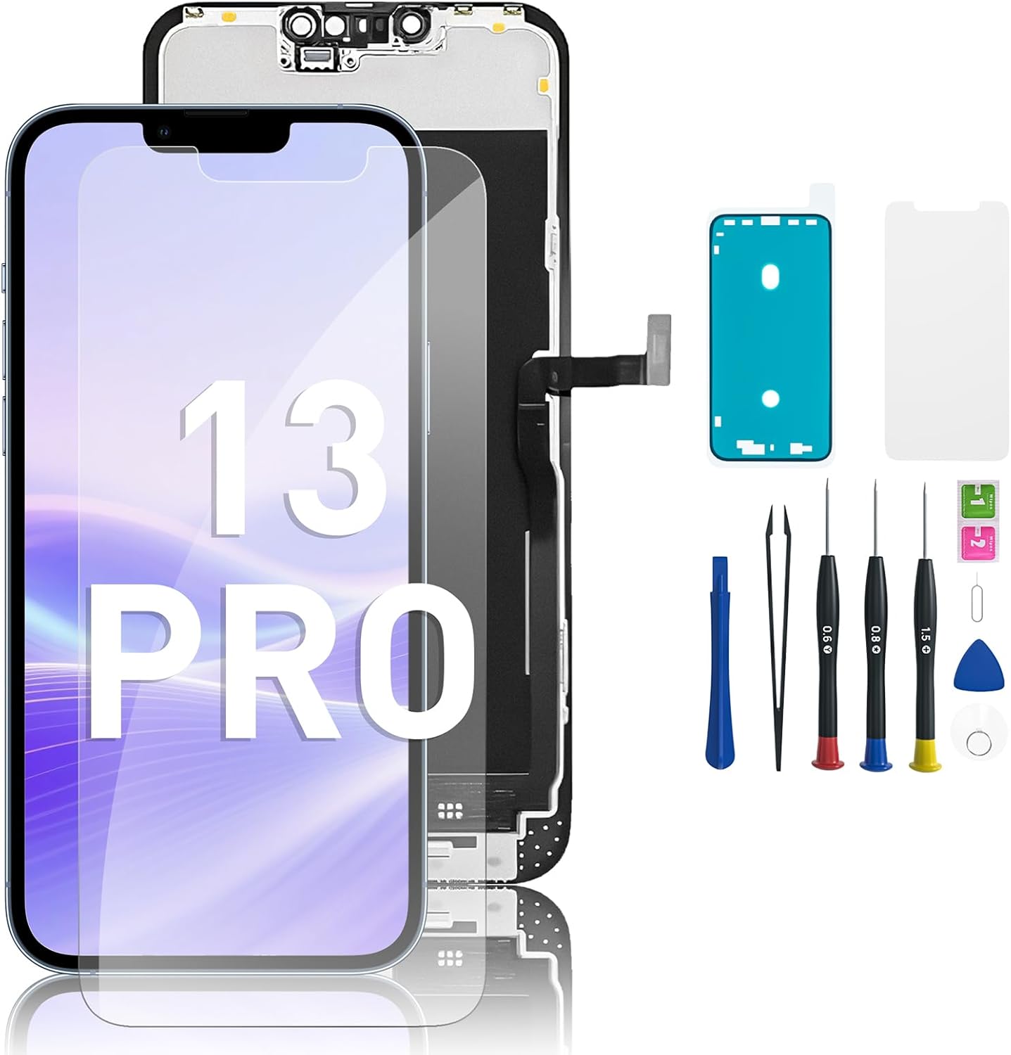 | Whats in the box | for iPhone 13 Screen + A set of Repair tools + Waterproof Frame Sticker + screen protector |