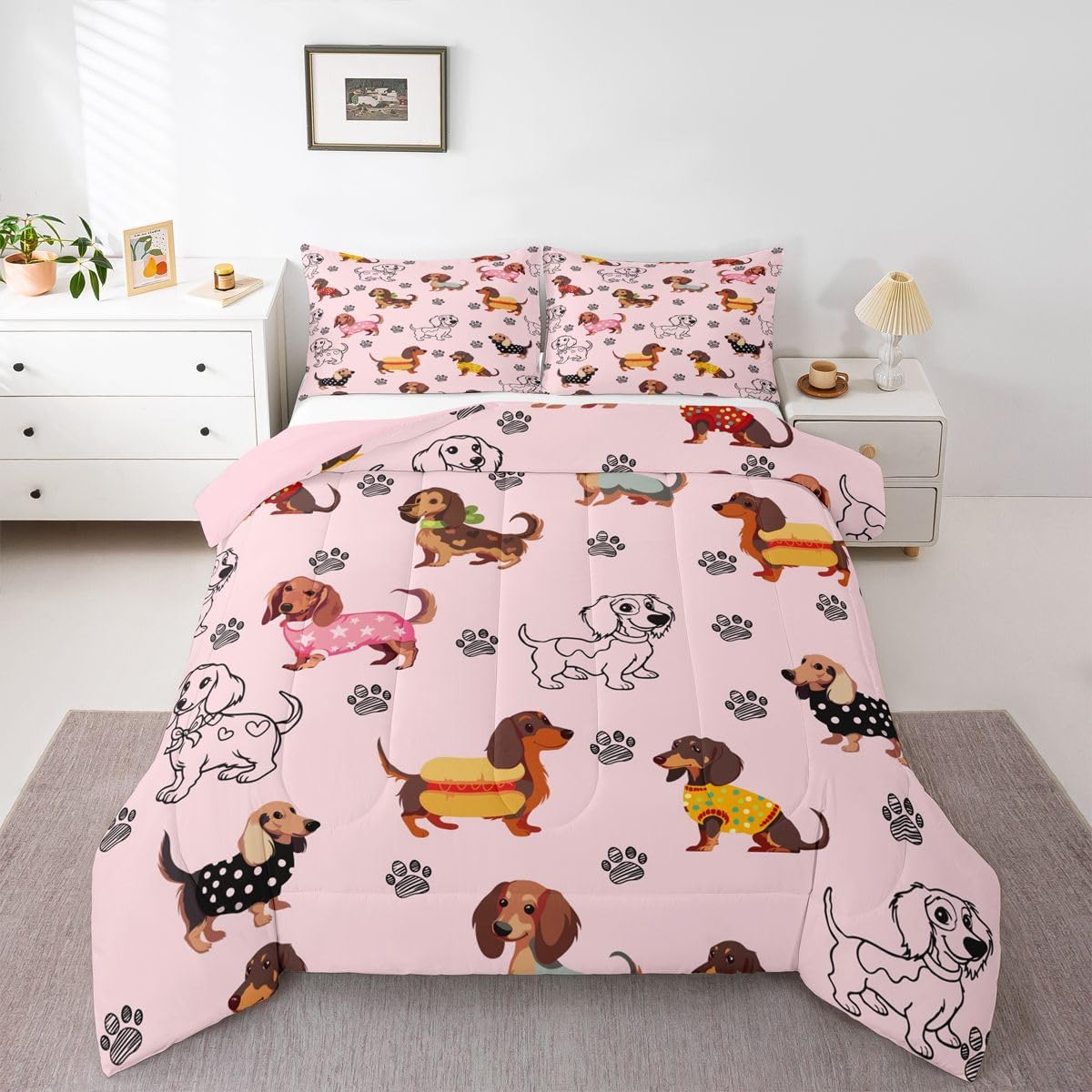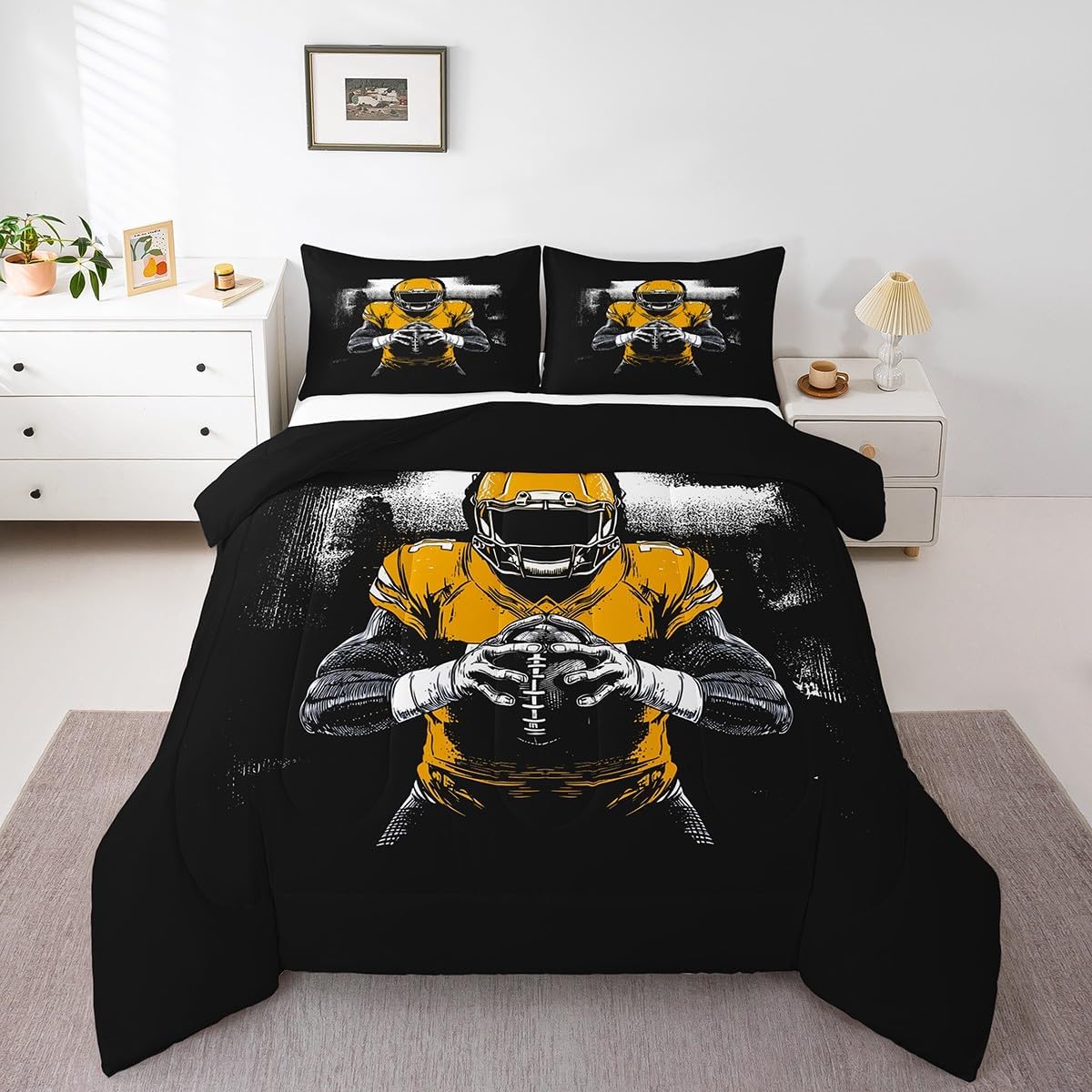 Makeover your bedrooms every season with our comforter sets; good item for your room, girls boys youth room, master bedroom Also a great decoration idea for your mom, dad, sister, brother, grandma, wife, husband, daughter, son and all other beloved Size Information:1 Toddler size comforter 42" X 58" and 1 pillowcase 30" X 20"1 Twin size comforter 68" X 90" and 1 pillowcase 30" X 20"1 Full size comforter 79" X 91" and 2 pillowcases 30" X 20"1 Queen size comforter 90" X 90" and 2 pillowcases 30" X 20"1 King size comforter 104" X 90" and 2 pillowcases 36" X 20"Useful and practical: A practical product for homes, dorm rooms, hotels, guest rooms. Comfortable to use for being polyester which is soft and breathable Unique design:Vivid colors and clear printed with digital printing. These unique designs match well with various color of your rugs, curtains, headboard, furniture, and all other decor accessories Characteristic:As manufacturers of digital printed home textiles, we follow current trends and bring you new home fashion Either a comforter to your family or friend, relative or boyfriend girlfriend, or to yourself, the item should be interesting and authentic Note:The comforter and pillow cases are printed on the front side only, the back of them are white colored