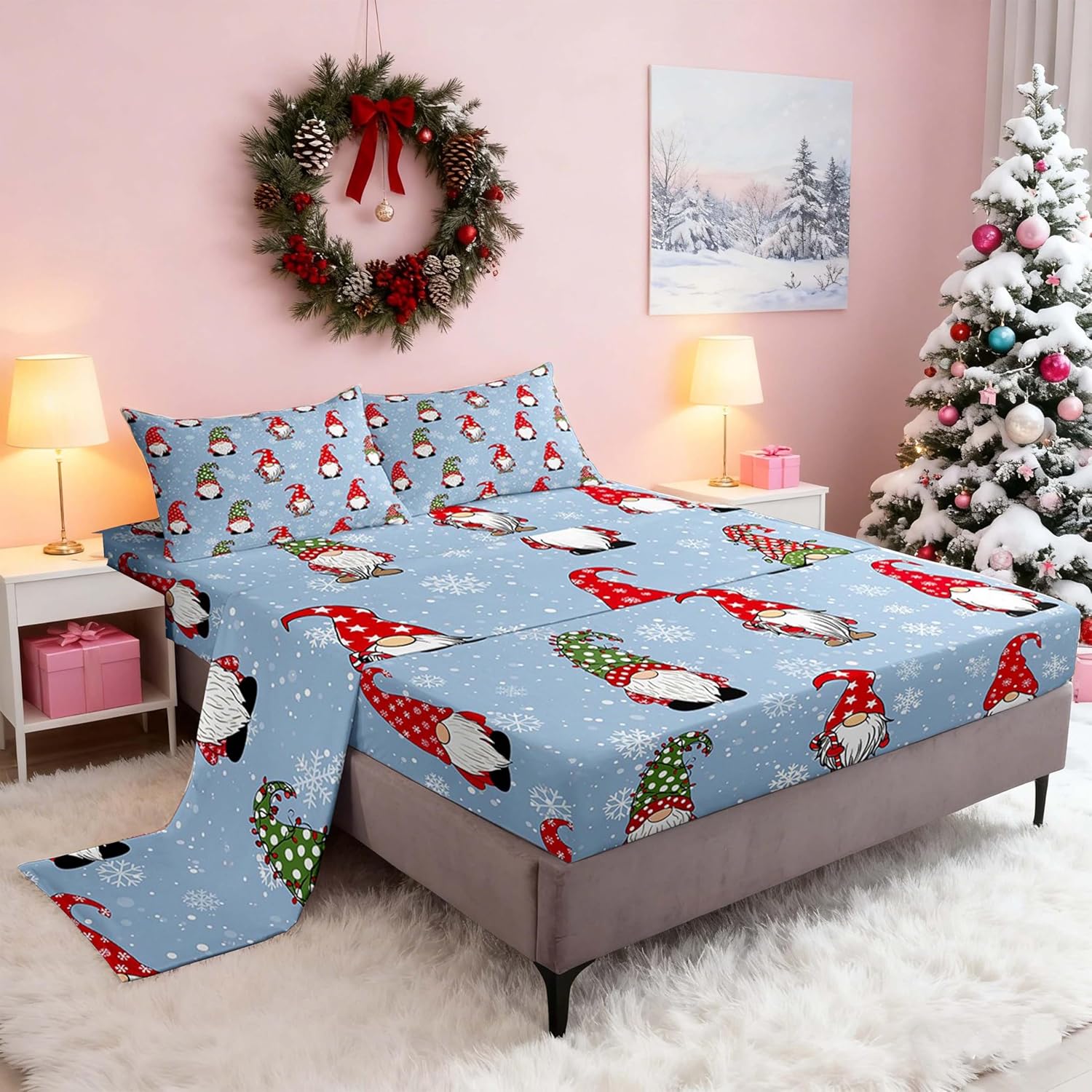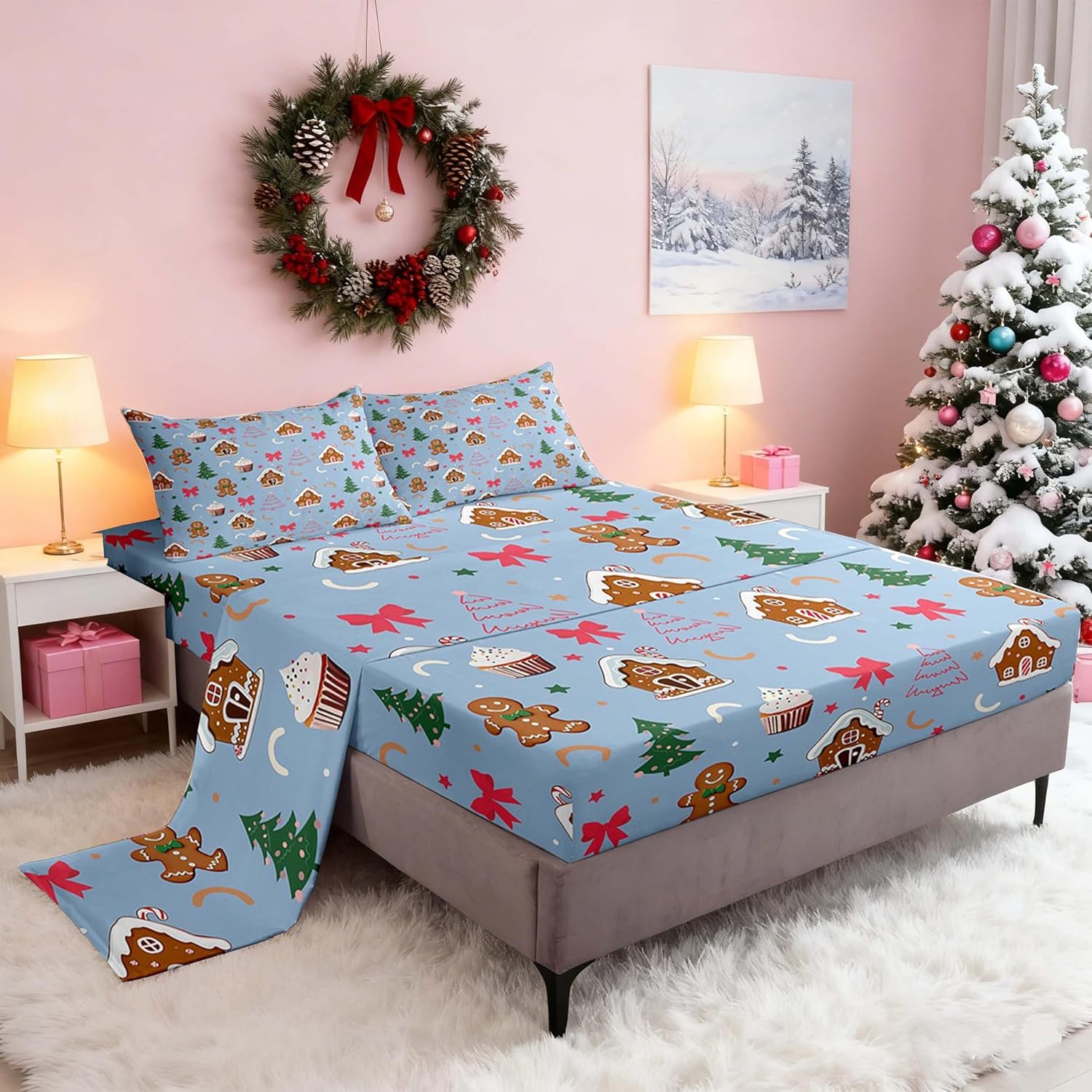 Feelyou Christmas Nutcracker Bed Sheets Set Twin Size Merry Christmas Bed Set Snow Black Red Green Deep Pocket Fitted Sheet Cartoon Wooden Soldier Toy Breathable Soft Microfiber Winter Holiday