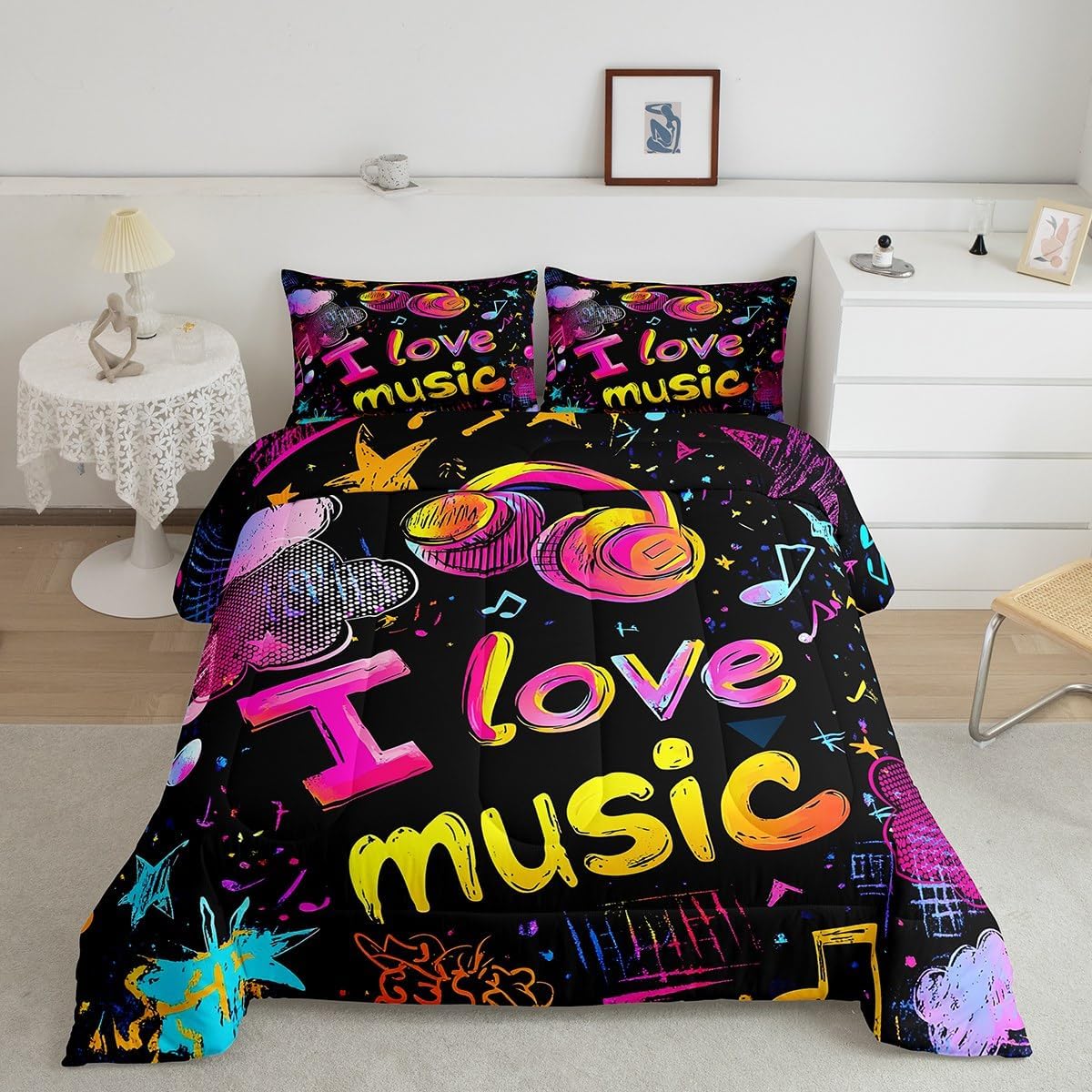 Makeover your bedrooms every season with our comforter sets; good item for your room, girls boys youth room, master bedroom Also a great decoration idea for your mom, dad, sister, brother, grandma, wife, husband, daughter, son and all other beloved Size Information:1 Twin size comforter 68" X 90" and 1 pillowcase 30" X 20"1 Full size comforter 79" X 91" and 2 pillowcases 30" X 20"1 Queen size comforter 90" X 90" and 2 pillowcases 30" X 20"1 King size comforter 104" X 90" and 2 pillowcases 36" X 20"Useful and practical: A practical product for homes, dorm rooms, hotels, guest rooms. Comfortable to use for being polyester which is soft and breathable Unique design:Vivid colors and clear printed with digital printing. These unique designs match well with various color of your rugs, curtains, headboard, furniture, and all other decor accessories Characteristic:As manufacturers of digital printed home textiles, we follow current trends and bring you new home fashion Either a comforter to your family or friend, relative or boyfriend girlfriend, or to yourself, the item should be interesting and authentic Note:The comforter and pillow cases are printed on the front side only, the back of them are white colored