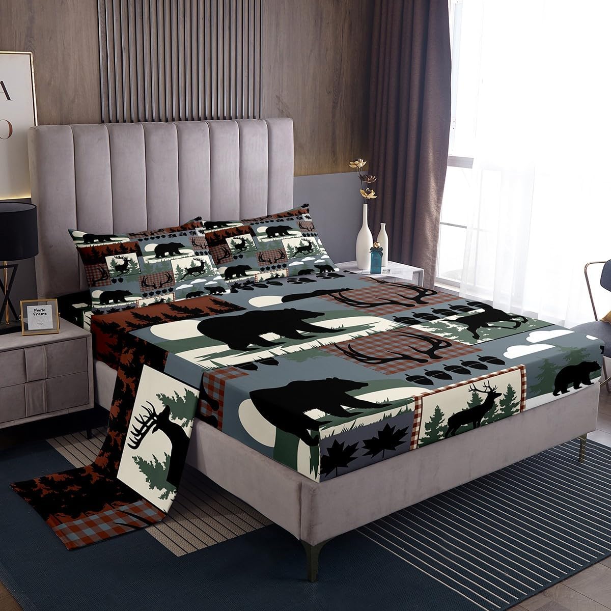 Our bedroom decor bed sheets set look with the vivid stylish and elegant print specifications: Twin Sheet Set: 1 twin fitted Sheet 39 inch x75 inch x16 inch, 1 twin flat sheet 66 inch x96 inch and 1 pillowcase 20 inch x30 inch Full sheet set: 1 full fitted sheet 54 inch x 75 inch x 16 inch, 1 full flat sheet 81 inch x 96 inch and 2 pillowcase 20 inch x 30 inch Queen sheet set: 1 queen fitted sheet 60 inch x 80 inch x 16 inch, 1 queen flat sheet 90 inch x 102 inch and 2 pillowcase 20 inch x 30 inch deep pocket fitted sheet with elastic all around materials: microfiber fabric, lightweight and soft design: With vibrant and novelty designs and 3d print technique, this duvet cover is very suitable as room decor for boys and girls care instructions dry clean preferred; machine washable, use cold water on gentle cycle, tumble dry low
