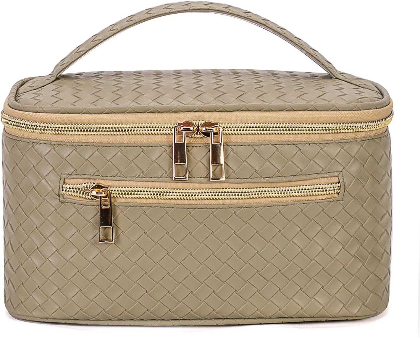 Large Toiletry Bag: 11"L*8"W*7"H; TOP LAYER 1*Clear zipper pockets 4*Separate brush slots BOTTOM LAYER 1*Mesh zipper pockets 3*Detachable divider compartments EXTERNAL FRONT ZIPPER POCKETS 1*Zipper pockets 2*Elastic pockets Closure:Zipper Material:PU leather If you hate the bulk bags,you can choose our toiletry bags,they are lightweight,you can put it easily in your luggage or handbag. Made with high-quality PU leather material,water-resistant,and easy to clean. Every one need a portable makeup bag,whether it is at home,in the office or on trip,help you easy to apply makeup at any time,so you can beautiful all the time. Our makeup bags have a spacious space that you can put your make up,toiletries and whatever else you can think to put in it!It is perfect for carry every day essentials. Separate Brush Compartment-A designated compartment for makeup brushes,keeping your brushes clean,organized,and within reach. Ideal for travel,business trip,vacation,gym,camping,and outdoor activity.Wide handle for easy carrying,sturdy stitching and heavy duty material and it can stand up many items. Perfect Gift Sets-This cosmetic bag suitable for various occasions.With sense of design,premium quality,adorable colors,decent size,which can hold skin care products and various cosmetics.The perfect holiday gift for your family members and friends when Christmas,Halloween,Easter,Birthday,or other festivals and parties.
