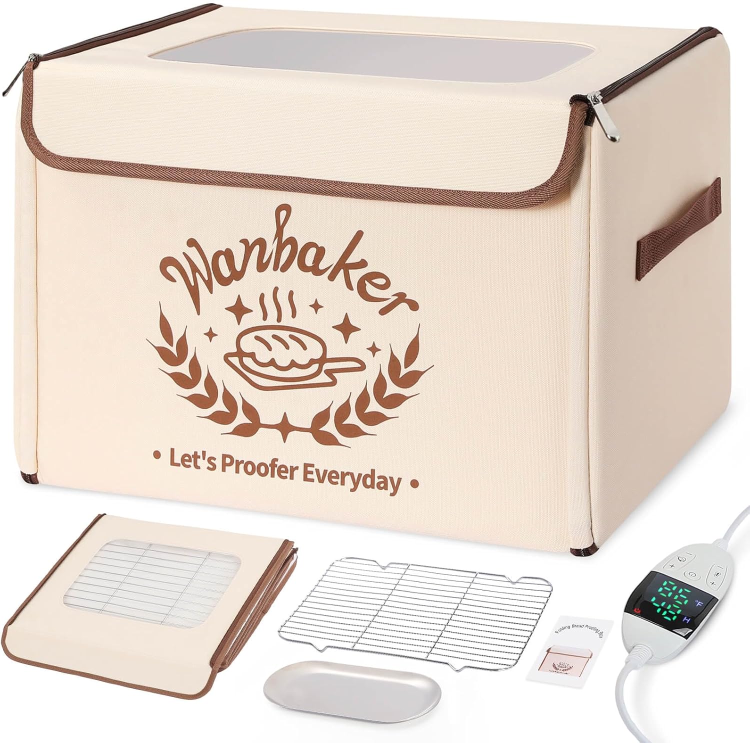 Folding Bread Proofing Box, 68-131F Temp Control 99H Timer, Foldable Dough Proofer for Sourdough Starter Pizza Yogurt Kombucha 6-Layer Insulated Fabric Metal Rack Included