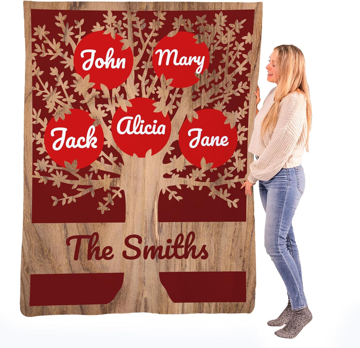 • Customizable Family Tree Blanket: Personalize with your family members' names and your last name to create a unique and meaningful keepsake that celebrates your family's unique bond.