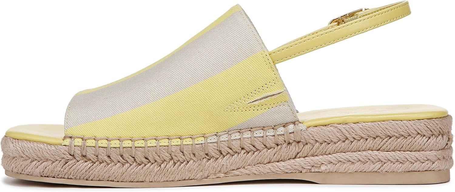 This espadrille platform, topped with an elegant leather slingback, makes for the perfect summer shoe. Leather upper. Slingback with adjustable hook and loop closure. Round toe. 1.5 inch platform.