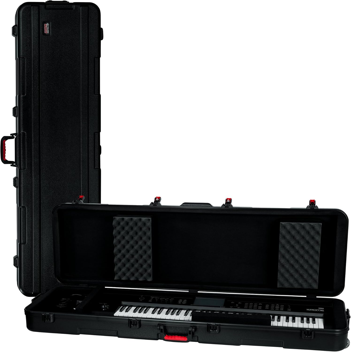 Gator cases constructs the TSA series keyboard cases using nearly indestructible polyethylene providing maximum protection for your keyboard during transport and storage. The TSA series cases are also equipped with newly designed TSA locking latches that are protected by impact diversion housings; protection for the protection! The TSA series keyboard cases also feature recessed 200lb capacity, in-line wheels that make transporting the case Easy. The TSA boasts a unique wedge and block design, which allows you to customize the interior and wedge your keyboard into the most protective position. The foam blocks have a hook and loop backing that allows them to attach to the internal material and be moved into any position within the case to secure the keyboard. The GTSA-KEY88SL 88 note slim keyboard case internal dimensions are: interior length: 53” Interior width: 15” Interior height: 6” and Fits popular models of keyboards including the Yamaha moxf, Yamaha motif, Yamaha MX, Korg KRONOS, Korg Kross, Roland Jupiter, Roland FA, Nord Stage series as well as many other keyboards, workstations, and synths from manufacturers such as Kurzweil, Dave Smith, Casio, Kawai, a Les is, Korg, Yamaha, Roland and many others. Simply measure your keyboard and compare it to the dimensions provided to confirm the fit. Gator cases is known for manufacturing innovative products designed to protect! We offer a wide range of products with a variety of available sizes, materials, and protection levels, for all types of instruments and gear including Frameworks stands, Rack works install Racks and Accessories, and protector drum cases. It isn’t hard to find a great reason why Gator should be the brand you trust to protect your equipment for life! .