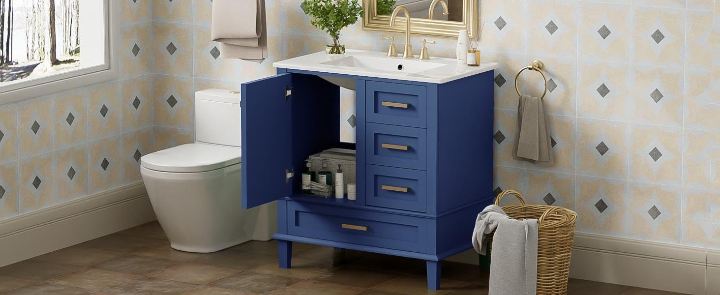 | Item Type Name | 30" Bathroom Vanity Sink Combo with 3 Drawers & 1 Soft Closing Door Floor Mount Freestanding Wood Bathroom Storage Cabinet Set with Ceramic Basin Sink Top for Small Bathroom Space, Blue |