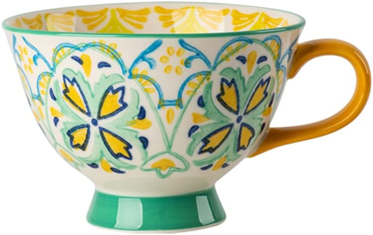 Bicuzat Hand-Painted Floral Pattern Large Capacity Ceramic Coffee Mug Jumbo Mug Tea Milk Cereal Mug Breakfast Cup for Home Kitchen 14oz, Set of 4