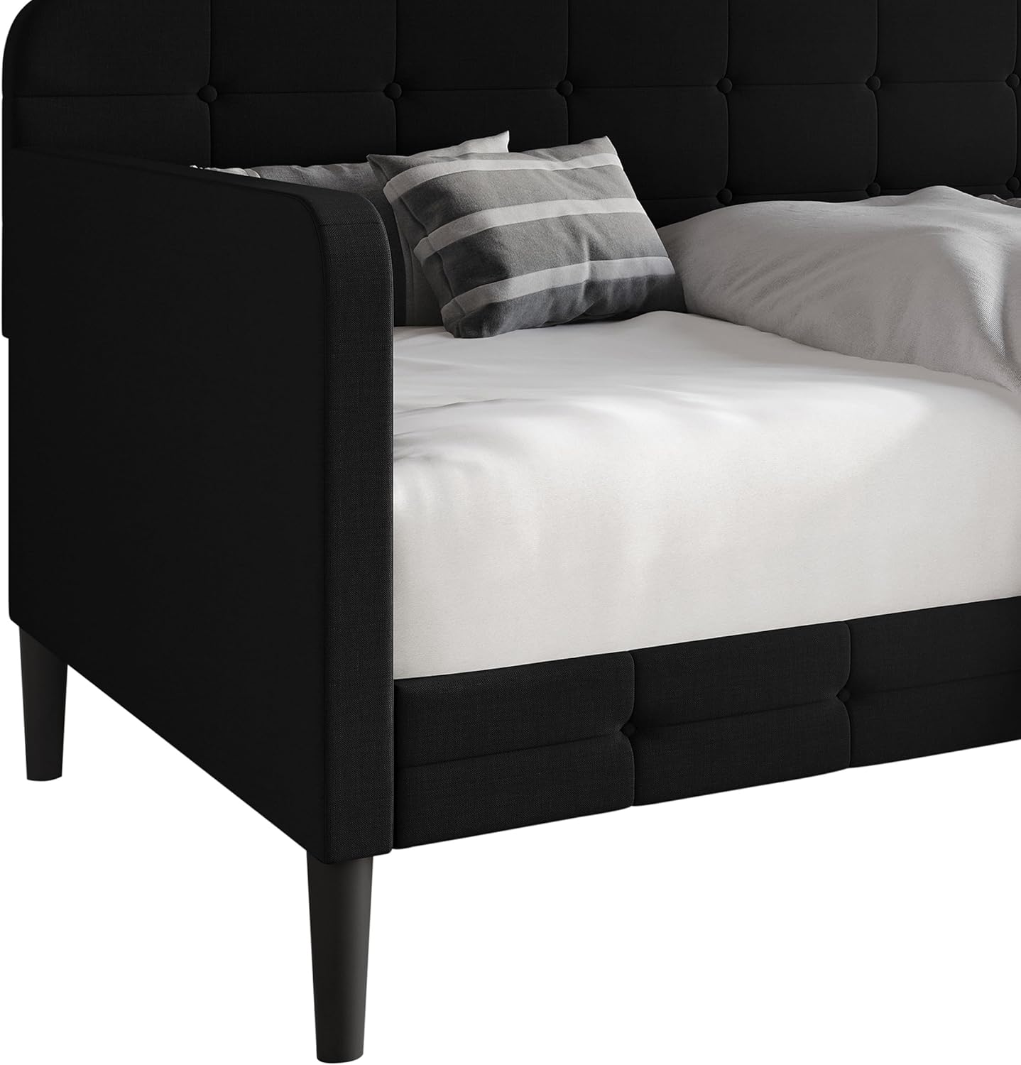 Bring refined style and multifunctional comfort to your home with the HOME DESIGN Fallon Linen Upholstered and Button Tufted Daybed — a versatile piece that blends classic charm with contemporary elegance. Designed to double as a chic sofa and an extra sleep space, this daybed is the perfect solution for guest rooms, living areas, or home offices. Upholstered in soft linen fabric and available in timeless Gray or Black, the Fallon Daybed features tailored button tufting and clean square recessed arms that create a structured silhouette with visual depth. Its thoughtful design adds both texture and sophistication to your space while maintaining a neutral palette that pairs effortlessly with a range of interior styles. Padded with plush cushioning for added comfort, the Fallon offers a cozy lounging spot by day and a supportive sleeping surface by night. The durable frame ensures long-lasting use, making it a practical and stylish addition to any room where flexibility and form matter most. Whether you're hosting overnight guests or seeking a comfortable reading nook, the HOME DESIGN Fallon Daybed delivers elegance, functionality, and everyday comfort in one beautifully upholstered piece.