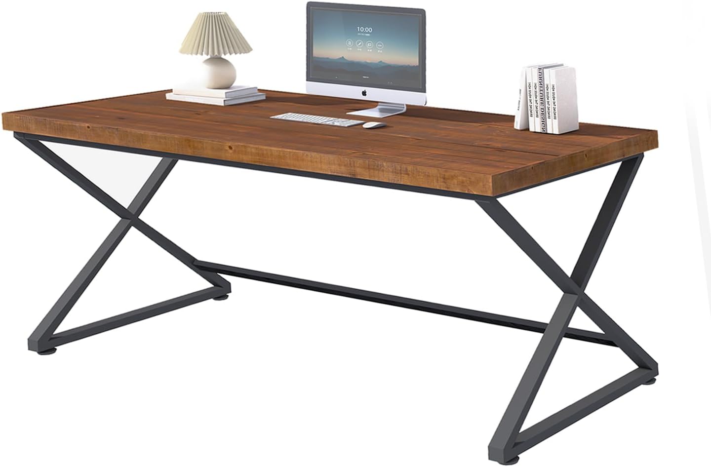 • Real solid Fir Wood Desktop: This IBF solid wood computer desk features a high-quality, natural fir wood desktop. The natural grain and texture add unique beauty, combined with X-shaped metal legs to ensure stability and durability. This real wood computer table boasts a charming modern industrial design that seamlessly integrates with any interior decor, enhancing your home office or workspace with our 47 inches desk.