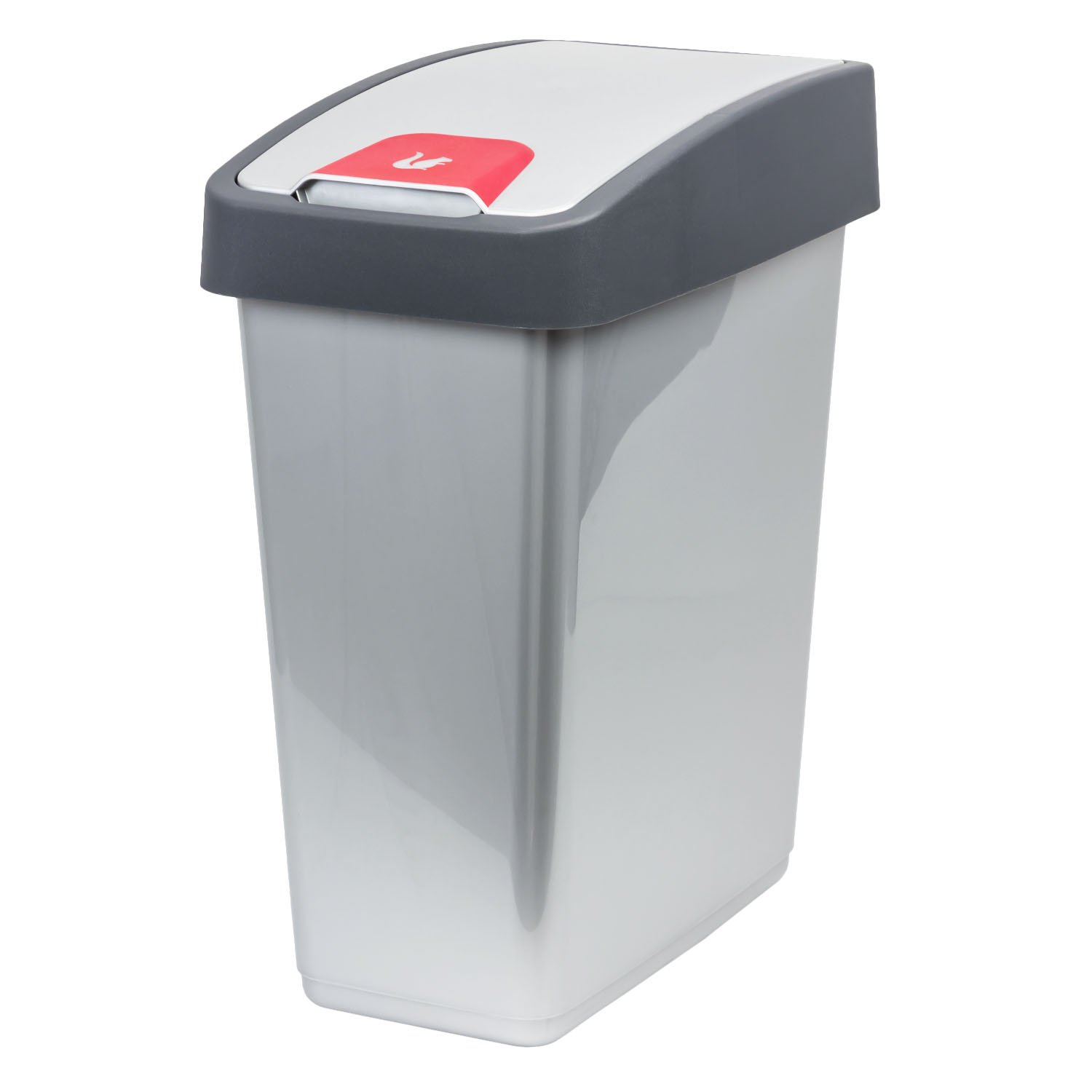 Compact premium waste bin with 2-way opening, For bin bags with a volume of 18-20 litres - Convenient waste disposal: Lid can be opened upwards as well as swung downwards, Pleasant soft-touch textured surface for easy use and handling - Subtle design with contrasting lid holder and integrated keeeper logo, Easy to clean with completely removable lid, Wipe with a damp cloth or sponge - Made in Europe, High quality, sturdy plastic (PP), BPA, plasticiser and pollutant-free - Contents: 1x Magne waste bin with flip lid, 10603, Dimensions (LxWxH): 29.5x18x36.5cm, Capacity: 10 L, Colour: silver