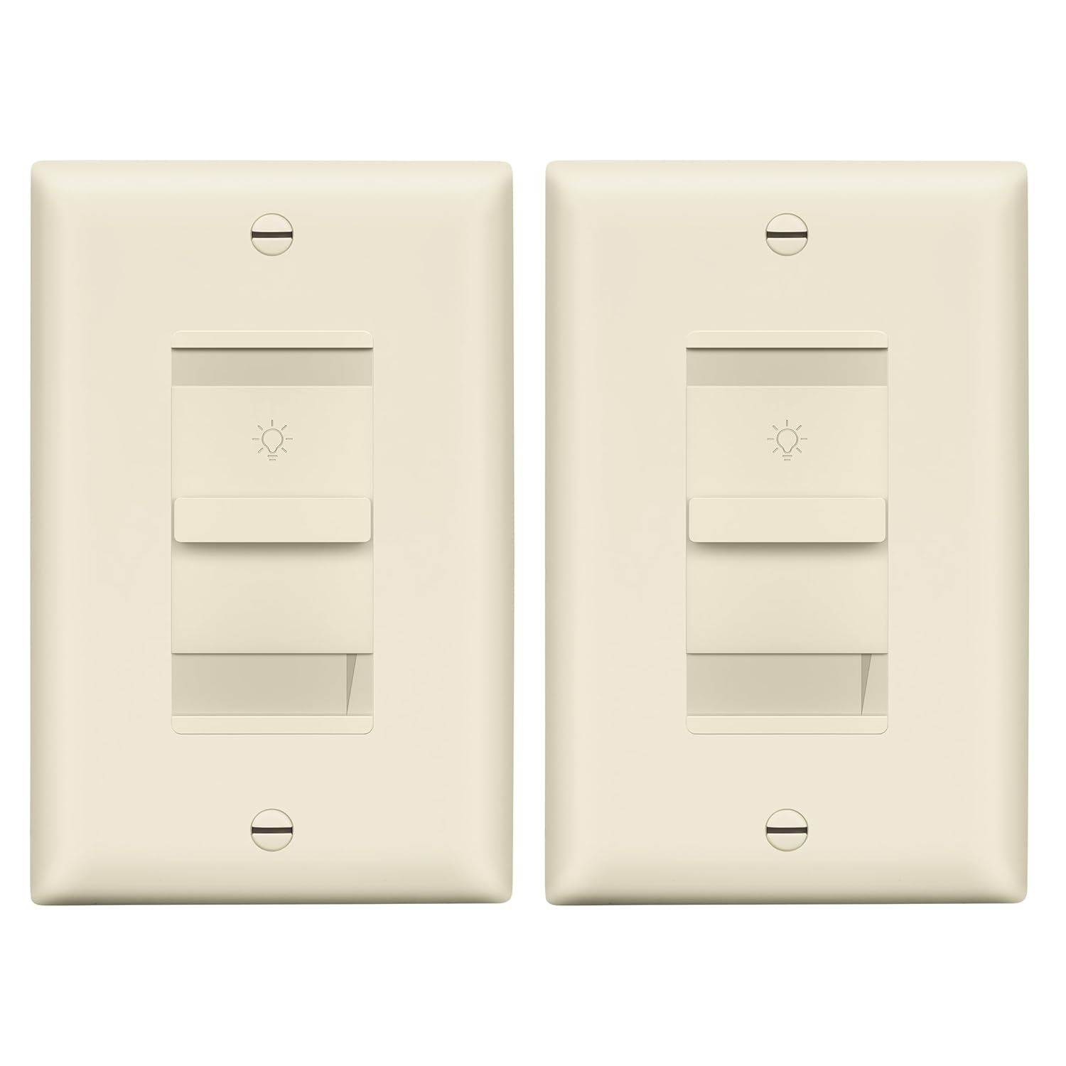 The LIDER dual dimmer switch offers an easy way to control two lighting fixtures. Effortlessly replace two standard light switches with this double dimmer switch for two customizable lighting controls from a single device. It has a sleek and minimalistic look that integrates into any home, office, or building. The sliders feature an intuitive, user-friendly design. Simply slide UP to brighten and DOWN to dim; a noticeable click can be heard when sliding all the way down to ensure the device is turned OFF. Using a dimmer light switch also uses less energy than conventional lighting controls, allowing you to conserve power and lower electricity bills.