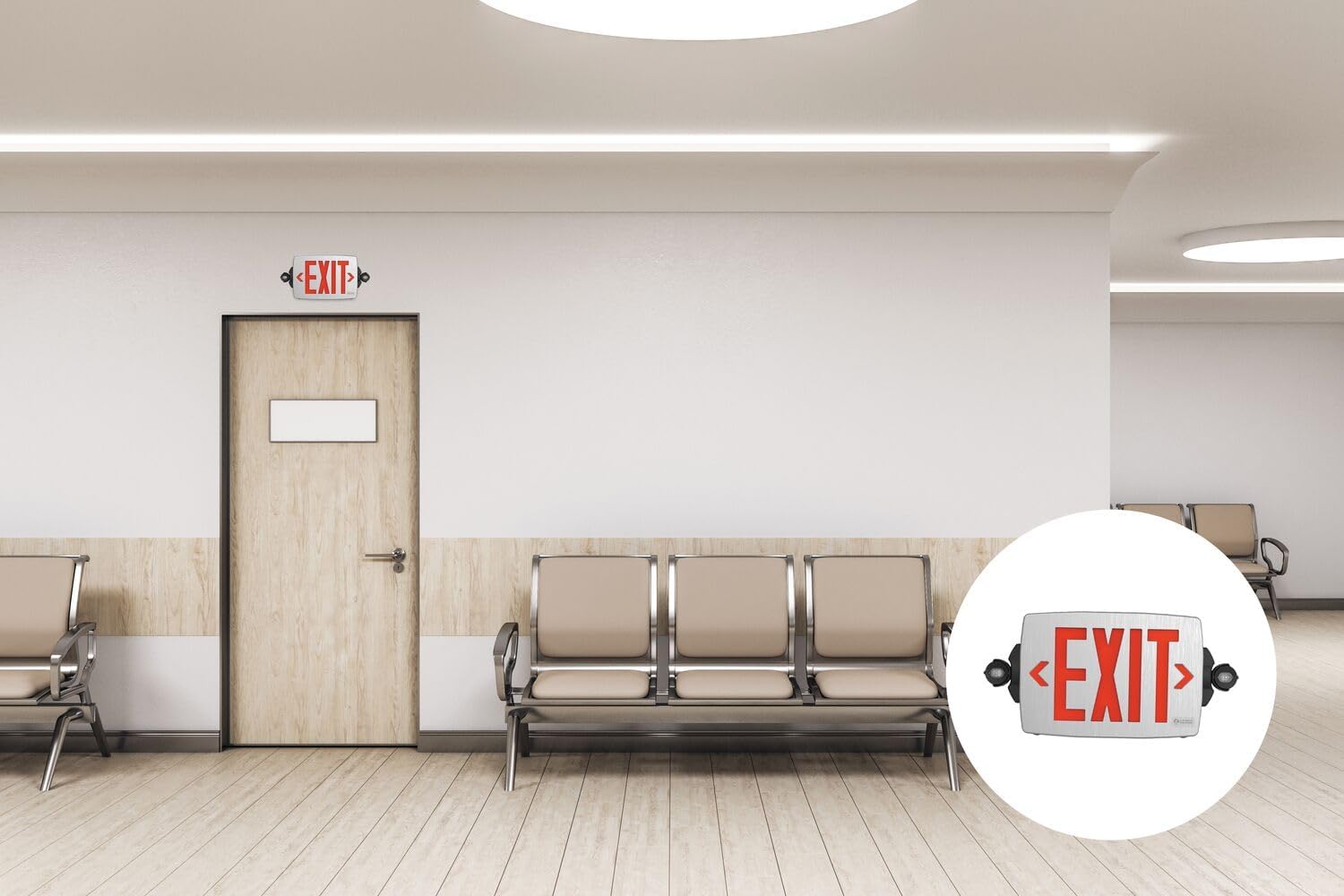 • 2-IN-1 EXIT SIGN & EMERGENCY LIGHT: The LHQM Exit Sign and Emergency Light Combo offers both red and green lettering along with LED light heads for premium egress lighting; Engineering-grade housing has a brushed silver finish for a high-end look