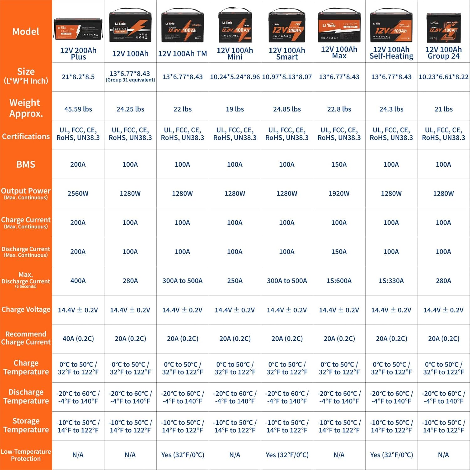 | Included Components | 12V 200Ah PLUS LiFePO4 Battery |