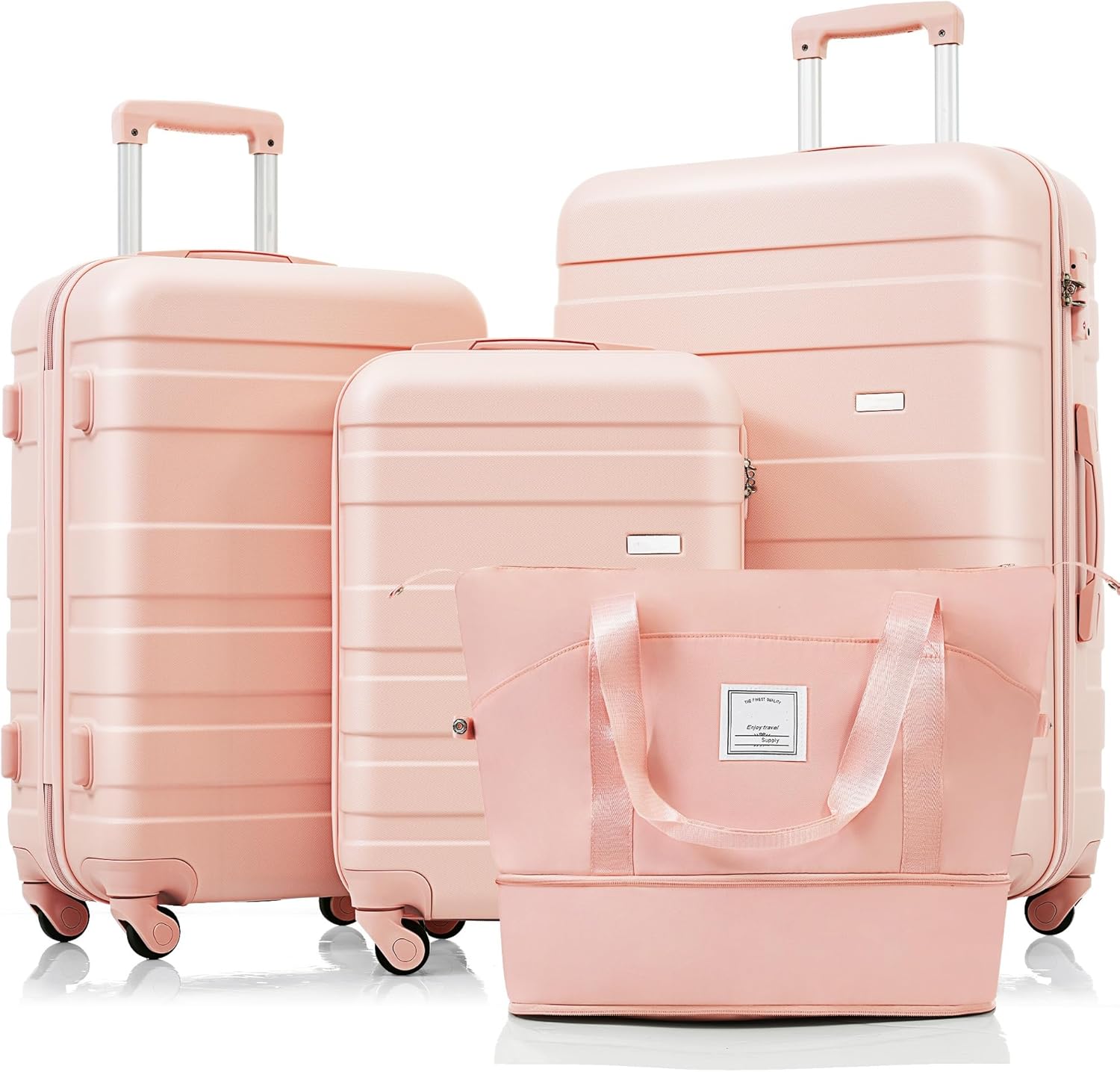 【High Quality Luggage Sets】:made from extra strong ABS material, which is lightweight and extremely durable. Features textured finish to prevent against scratches,keeping lightweight luggage set beautiful trip after trip. 【SECURE TSA LOCK:】: Side of the suitcase-mounted TSA lock, which allows only TSA agents to inspect your luggage sets clearance without damaging the lock when traveling. 【Handy Packing】- Includes a spacious, highly functional interior with mesh pockets and elastic tie-down straps. Pack neatly and securely. luggage set Approx.Dimension Approx.Dimension Approx.Weight Travel days (excluding wheels) (including wheels) 20inch 18.1" x 13" x 8.3" 20.8" x 14" x 8.7" 6 LBS 1~5 days 24inch 25.6" x 17.5" x 10" 22.7" x 15.5" x 9.4" 7.5LBS 5~7 days 28inch 26.4" x 18.5" x 11.8" 29" x 19.6" x 12" 9LBS 7~10 days