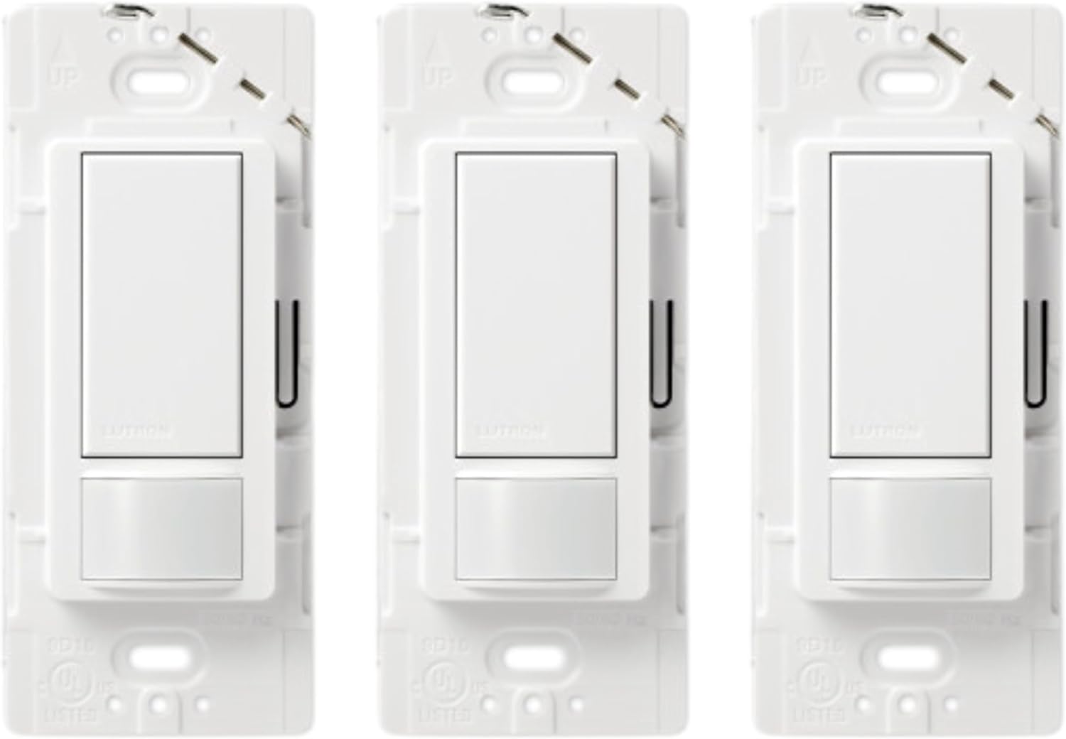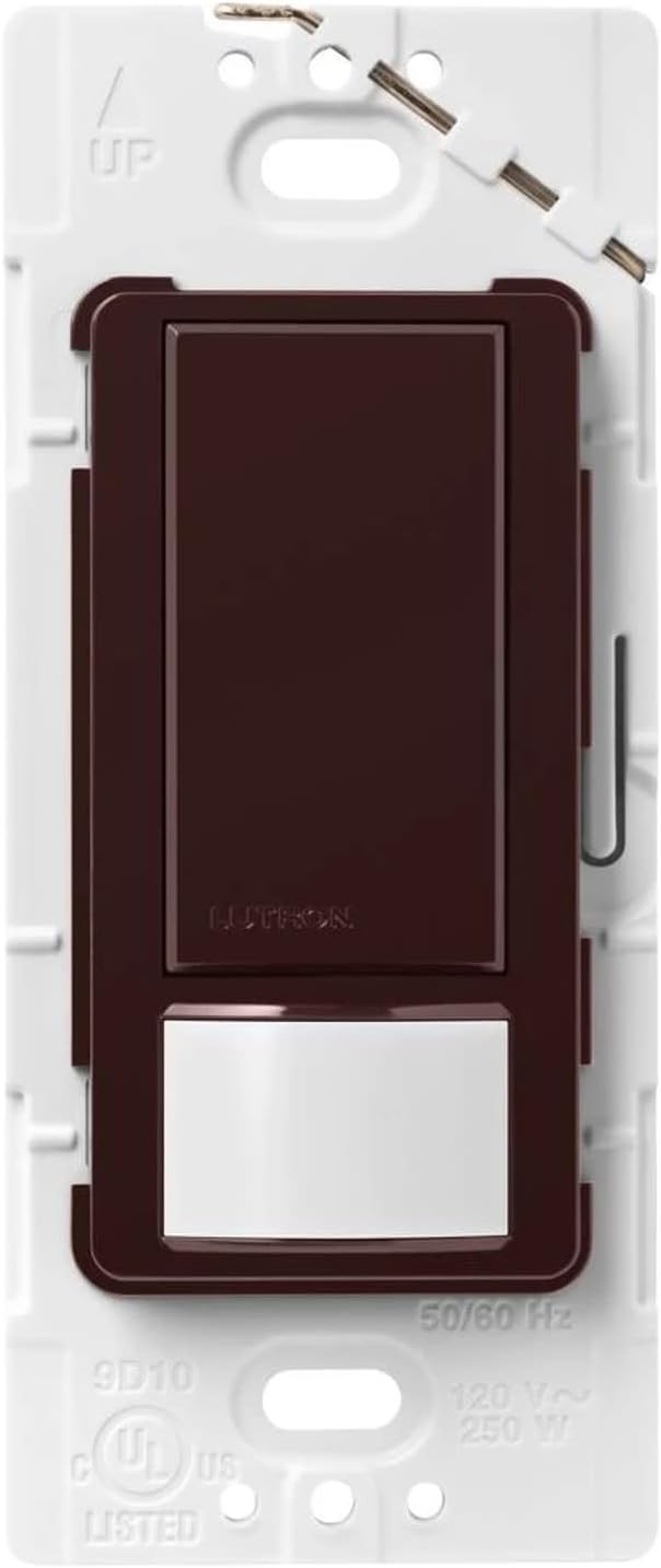Product Description Conserve energy with the Maestro occupancy sensor switch from Lutron Electronics for light automation in your home. This wall-mounted switch turns lights on when you enter a room and off after you leave. Ideal for garages, basements, and living rooms, it offers convenience when your hands are full. Featuring Advanced XCT sensing technology, it detects subtle motions like reading, ensuring lights stay on when needed, sensing motion up to 30 feet with coverage for 900 square feet. Using patented ambient light detection, it activates lights only when necessary based on daylight. Available in Almond, Ivory, Light Almond, and White, the elegant design complements any room décor. Switch to vacancy mode for rooms where lights require manual activation and automatically shut off when unoccupied, suitable for bedrooms or areas with pets. Compatible with various bulb types including incandescent, halogen, electronic low voltage (up to 600 watts), magnetic low voltage (up to 200 watts), and CFL and LED bulbs (up to 150 watts), it can operate ceiling or exhaust fans up to 3 amps and requires no neutral wire. Suitable for single-pole and 3-way applications, it integrates into home automation settings. Manufactured by Lutron Electronics, Coopersburg, Pennsylvania, their products contribute to energy savings and longer bulb life. Let Lutron’s Maestro Occupancy/Vacancy Motion Sensor Switch offer energy efficiency in bathrooms, laundry rooms, kitchens, and garages, working with any bulb type, including CFL and LED. It completes the Maestro product family line for a coordinated home look, with programming options for light operation. Coordinating Claro wall plate and accessories are sold separately Amazon.com Conserve energy and automate the lights in your home with the Maestro occupancy sensor switch from Lutron Electronics. This wall-mounted switch automatically turns the lights on when you enter the room and turns them off after you leave. It's a great convenience when your hands are full and you can't reach the light switch, and it means you never have to worry about leaving the lights on by mistake. This version of the Maestro occupancy sensor switch is ideal for large rooms such as garages, basements, and living rooms. Detects Fine Motions to Keep Lights On The Maestro occupancy sensor switch features proprietary Advanced XCT sensing technology, which detects fine motions such as reading or working at a desk. This ensures that the lights do not turn off inadvertently when the room is occupied. The switch reliably senses motion up to 30 feet away for up to 900 square feet of coverage. In addition, it's designed to learn your personal light preference based on your use of the product. Senses Daylight to Turn On Only When Needed The Maestro occupancy sensor switch is equipped with patented ambient light detection that can identify when daylight is in the room. As a result, the switch only turns the lights on when they're needed.Elegant Design to Complement Your Home Décor Keeping the sleek design of the Maestro family, Lutron sensors are made to match the décor of any room in your home. The Maestro occupancy sensor switch is available in four colors: Almond, Ivory, Light Almond, and White.Optional Vacancy Mode with Manual On The Maestro occupancy sensor switch can also be switched to vacancy mode, in which you manually turn the lights on when you enter a room and a sensor automatically shuts the lights off when the room is vacant. Vacancy mode is great for bedrooms, kids' rooms, or rooms with pets.Compatibility and Installation The Maestro occupancy sensor switch works with all bulb types, including incandescent, halogen, and electronic low voltage bulbs up to 600 watts; magnetic low voltage bulbs up to 200 watts; CFL and LED bulbs up to 150 watts; and 2 amp magnetic/electronic ballasts. It can also operate ceiling or exhaust fans up to 3 amps. No neutral wire is required. This product is for single-pole and 3-way applications only.About Lutron Electronics Lutron Electronics, headquartered in Coopersburg, Pennsylvania, designs and manufactures lighting controls and automated window treatments for residential and commercial applications. Lutron products save energy and make light bulbs last longer, making them an addition to the home and office. Lutron estimates that the installed base of its products saves the nation nearly 10 billion kWh of electricity, or approximately $1 billion in utility costs per year.What's in the Box One Maestro occupancy sensor switch.