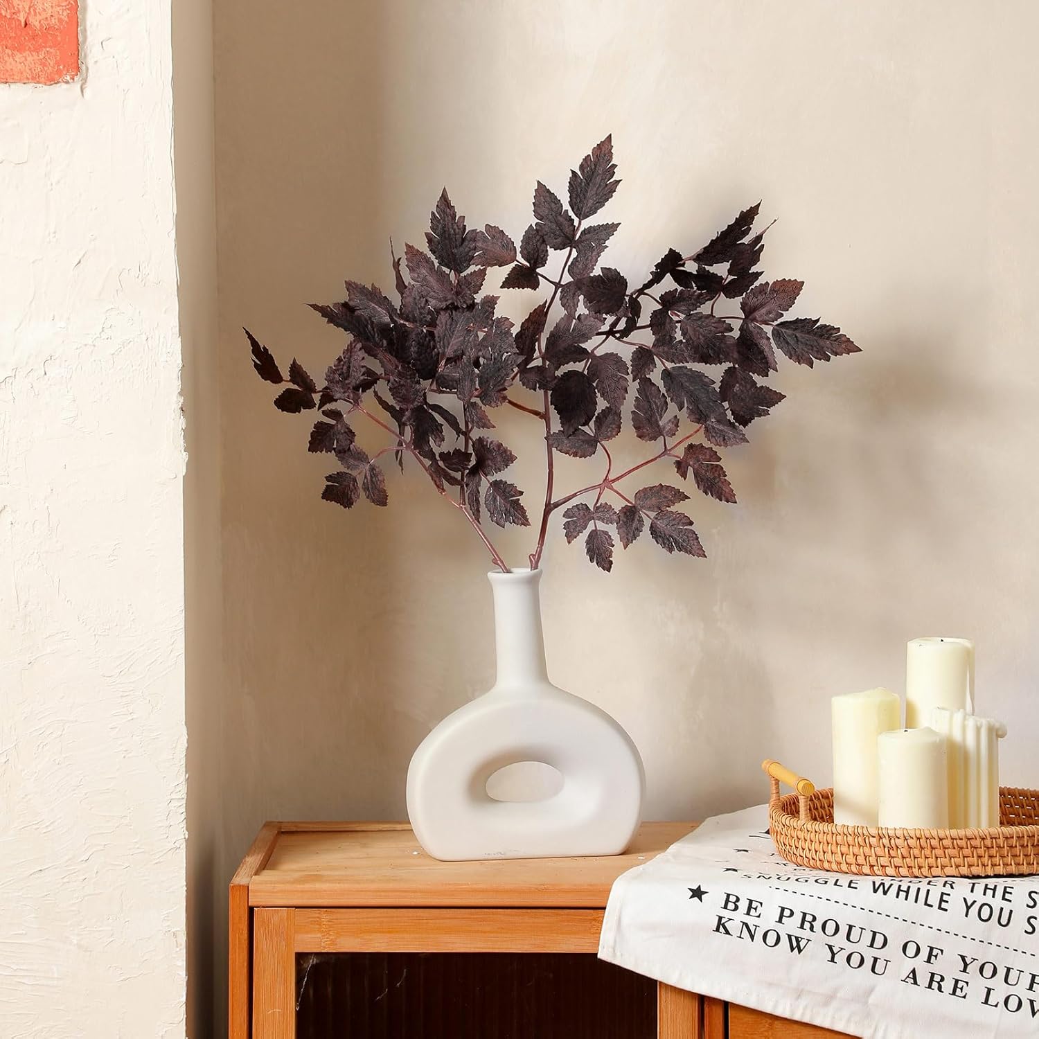 Features: Exquisite Fall Decorations: Blending perfectly with farmhouse-style decoration, these silk plants can also be applied as fall, or Halloween decorations, amplifying the seasonal aura of your space significantly, you can place these beautiful leaves in a vase as a table centerpiece or as a finishing touch to a banquet. Ideal for All Occasions: These artificial cimicifuga ramosa leaves exhibit a high degree of similarity with the real ones, providing you the aesthetic appeal of natural foliage without any care or upkeep. Whether you want to dress up your mantel harvest or add a touch of elegance to your home decor, these exquisite faux silk plants are the perfect choice for every occasion. Specifications: Material: 40% fabric, 30% PE plastic, 10% wire, 10% glue, 10% pulpColor: plum PurpleSize: 19.5 inches/ 49.53 cmPackage includes: 12 X Plum Artificial Cimicifuga Ramosa LeavesNote: Manual measurement, please allow slight errors in size. The color may exist a slight difference due to different screen displays.