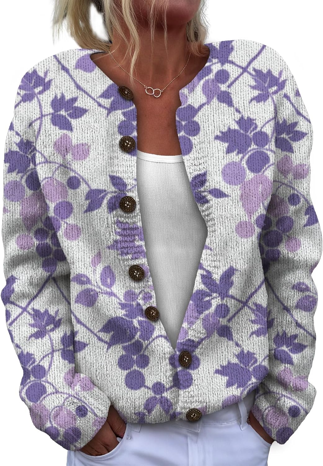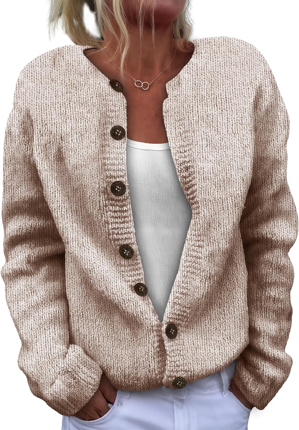 MARSVOVO Fashion Casual Vintage Cardigan Sweaters for Women Comfy Lightweight Knit Crewneck Long Sleeve Button Down Fall Sweater Loose Fit Cozy Spring Cute Cardigan