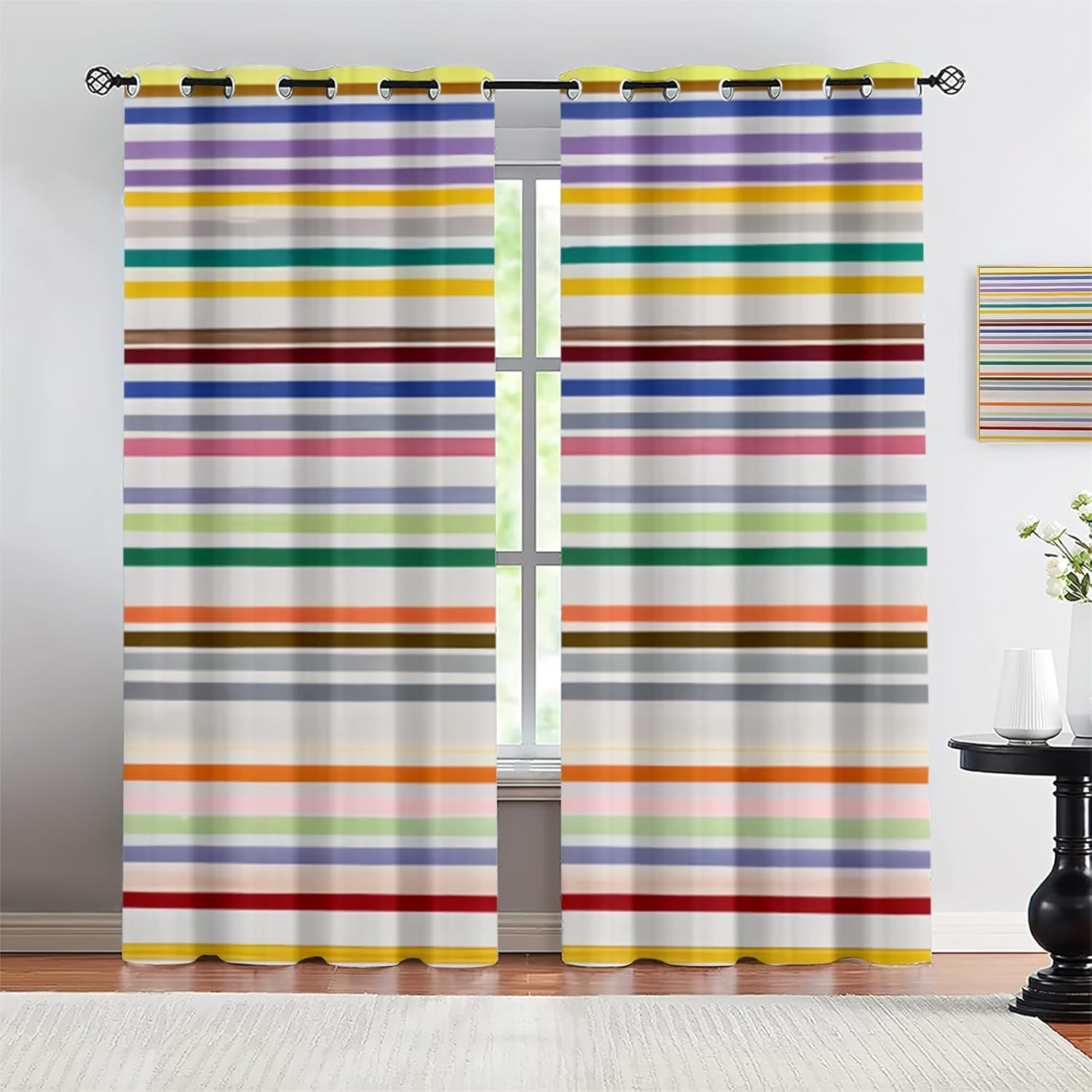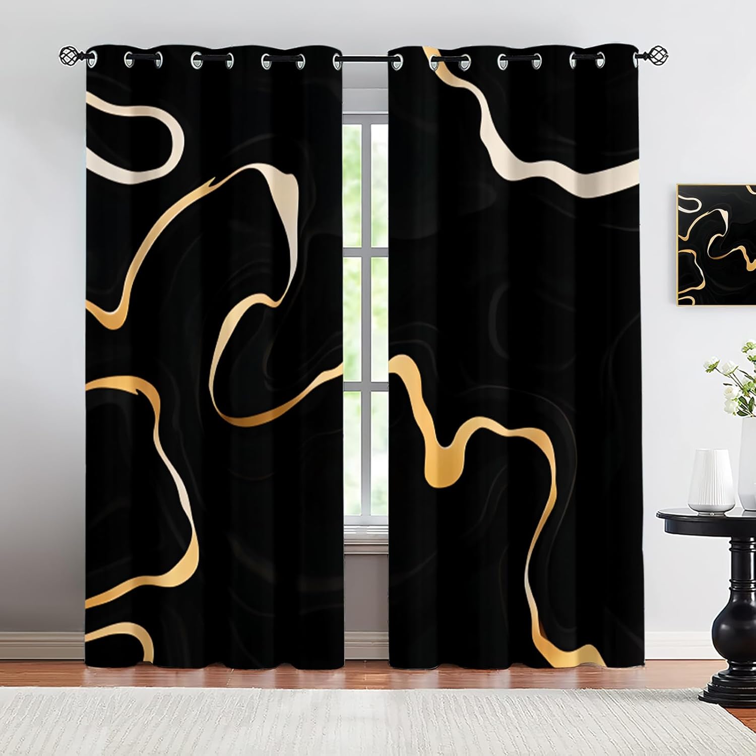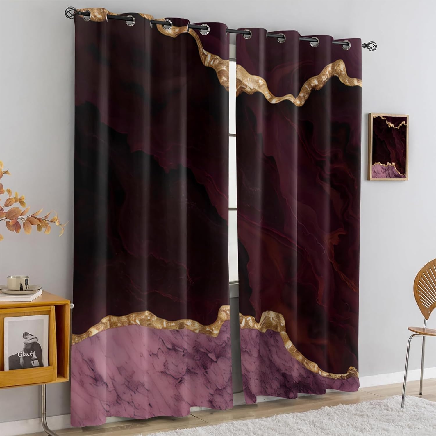 Add your house an classic and sophisticated touch, thus you can easily blend these with your existing home decor.Features:Blocking Drapes--Three-in-one weave technic, the high density middle layer of black yarns create a curtain panel that is excellent for blocking out harsh outside light. Tey can also protect your floors furniture and artwork from the ravages of the sun.Sophisticated Craftsmanship--These charming printed curtains apply careful stitching to make sure that there are no loose threads, wrinkle hems and uneven edges.Thermal Insulated & Energy Saving--Thermal Energy Efficient and Balance Temperature, keeping room cooler against heat in summer and retaining the room warm in winter.Privacy Curtain--They work as a visual barrier, ensuring your personal space remains concealed. Noise Reduction Curtains--Made from heavy fabric, not only does this curtain hang elegantly across your windows, Block and reduce the noise outside the window, keep your room quieter to have a better resting house.Anti-Rust Grommet Curtains--Our curtains feature durable grommets that resist rust, ensuring a long-lasting and elegant finish.Home Decoration Curtains--Variety of sizes and colors provides more choices for room decoration, perfect for bedrooms, living rooms, babies, childcare centers, kitchens, playrooms, school playrooms, hotels, offices, and restaurants ect.SpecificationMaterial: Polyestersize:(21"W x 63"L ) x 2 = 42"W x 63"LNotice:1.Don't use sharp things scratching curtains.2. Because the picture is taken by a camera, there may be slight color difference from the actual picture.(3.There may be a slight difference in product size for hand measurement(1-2cm).