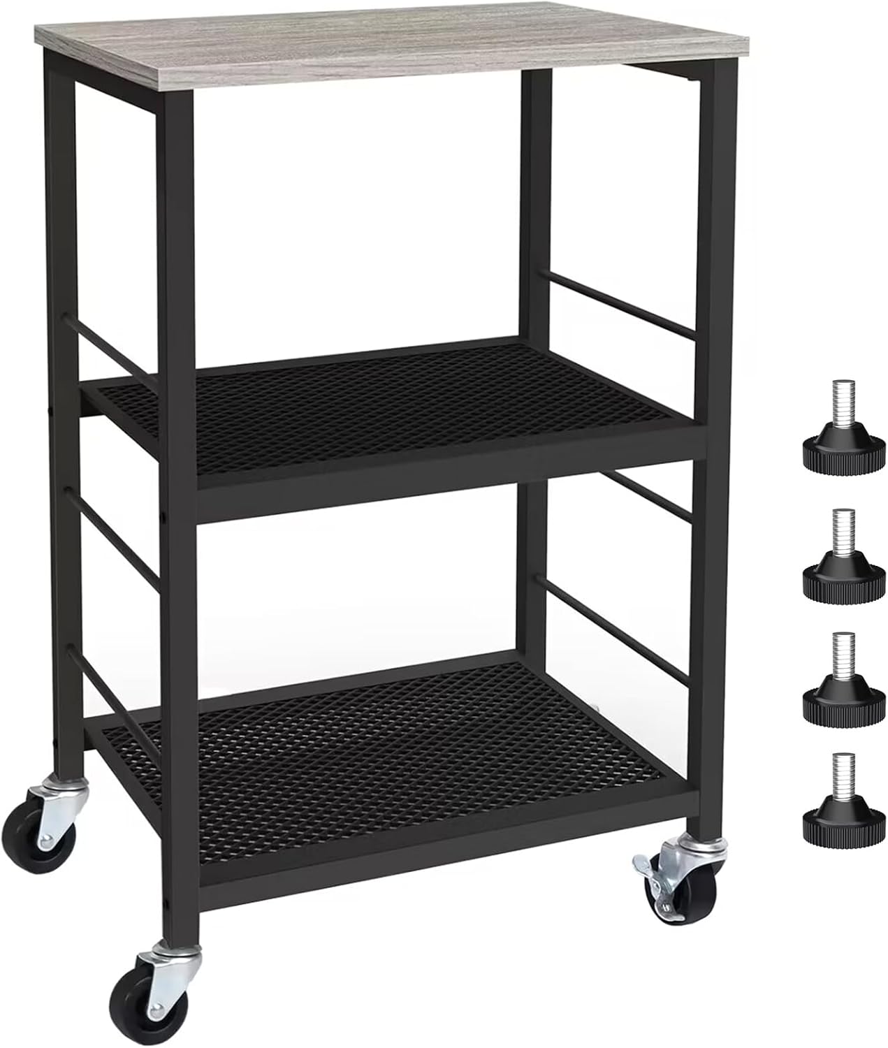 • 3 Tier Storage Cart: This rolling cart provides you with sufficient storage space, wooden desktop can place your coffee cup, book, photo frame, magazine, laptop, small printer, can also be used as a kitchen cart, microwave stand, printer stand, coffee cart.