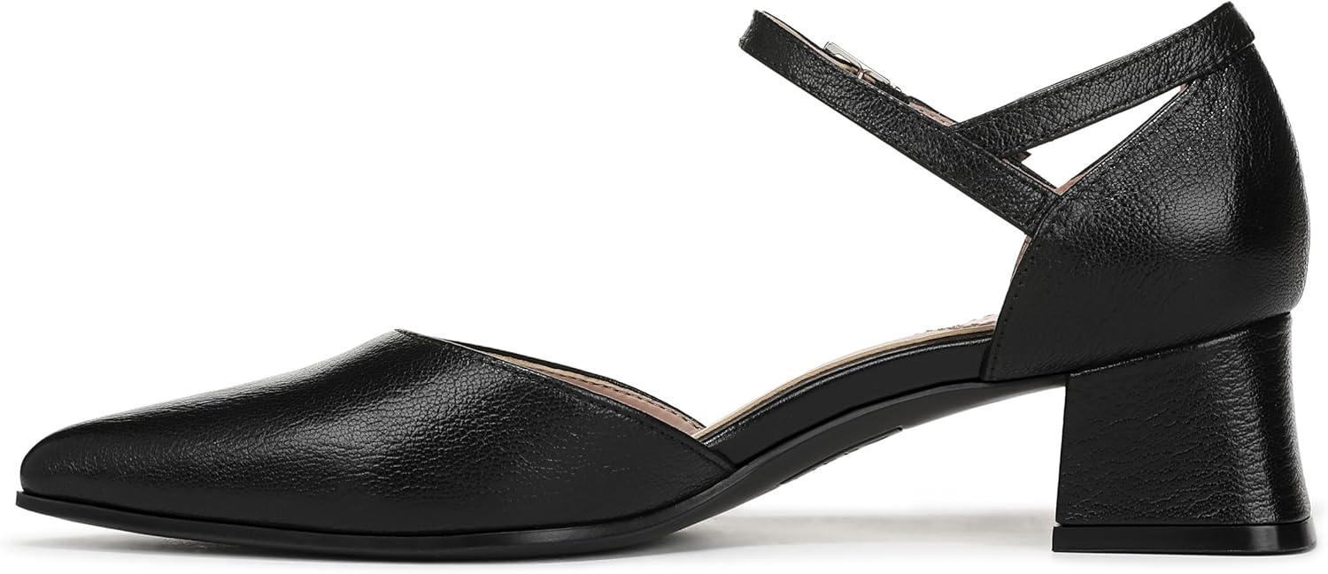 Powered by REZORB™ // Sleek. Sophisticated. Scene-stealing. The dress pump that livens up any party. Strappy heel with adjustable buckle closure. Leather upper responsibly sourced from Leather Working Group certified tanneries and a pointed toe. REZORB™ responsive cushioning for shock absorption + impact protection for sneaker-level comfort. Contour+ Comfort technology for a premium fit and all-day comfort experience. Partially bio-based footbeds: Crafted with soft and lightweight cushioning, built-in arch support, and a molded heel cup. 1 3/4 inch block heel. Consciously packaged: 100% of our shoe boxes are made of 80% recycled paper + soy-based ink. Linings, insole, toe and counter box crafted from partially recycled materials. WHY YOU’LL LOVE IT: Forever elegant silhouettes with all day wearability, available in an inclusive range of sizes and widths. Designed to the contours of a woman’s foot. The Beautiful Fit. Since 1927.