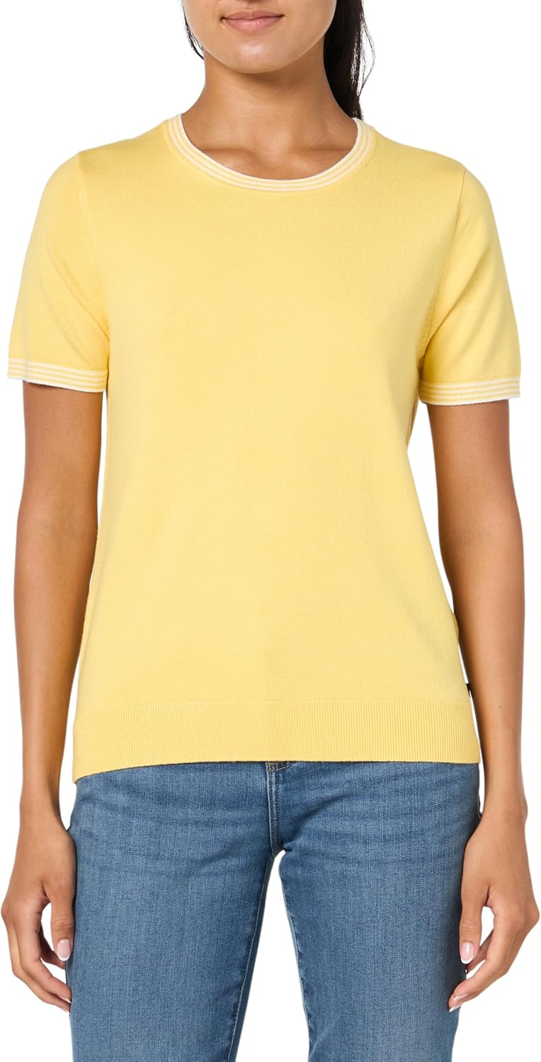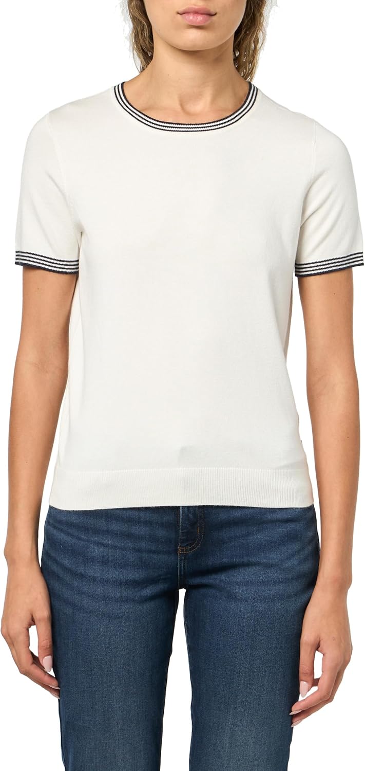 This Nautica Women's Jeans Short Sleeve Sweater is a Solid Tipped Scalloped Short Sleeve Sweater