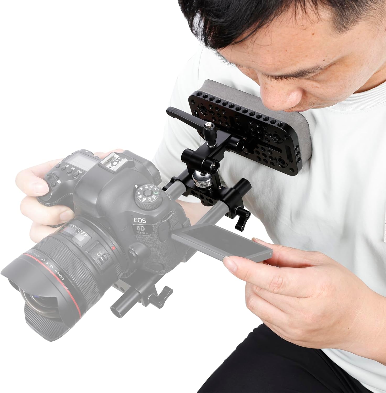 The Adjustable Chest Pad Mounting Kit with 15mm Dual-Rod Clamp 619 revolutionizes handheld filming. Its extends your camera rig with the 15mm clamp, significantly reducing weight burden. Comes with the magic arm, offering 180° rotation for multi-angle shots, while the multi-hole chest support can be positioned anywhere and locked with two screws. A large wingnut knob enables switches between horizontal and vertical modes. Finally, a soft pad with 3M adhesive ensures comfort and is easily replaceable, guaranteeing stable, fatigue-free shooting during long takes.Compatibility: Fits for 15mm rod systemWhat you get: 1 x 15mm rod support bracket 1 x Chest pad 1 x L wrenchProduct weight: 0.68 lb Process: Sandblasting + Silver anodized, CNC Material (s): Aluminum alloy / EVA foam