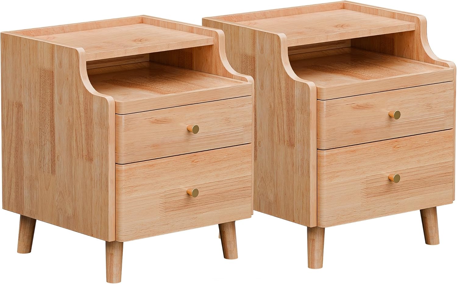 • Solid Wood Nightstand:Crafted from high-quality natural rubber wood and paired with splayed thick tapered wooden legs, this minimalist nightstand offers a stable, sturdy structure and excellent load-bearing capacity. Designed for long-lasting use, it’s built to endure for years to come.
